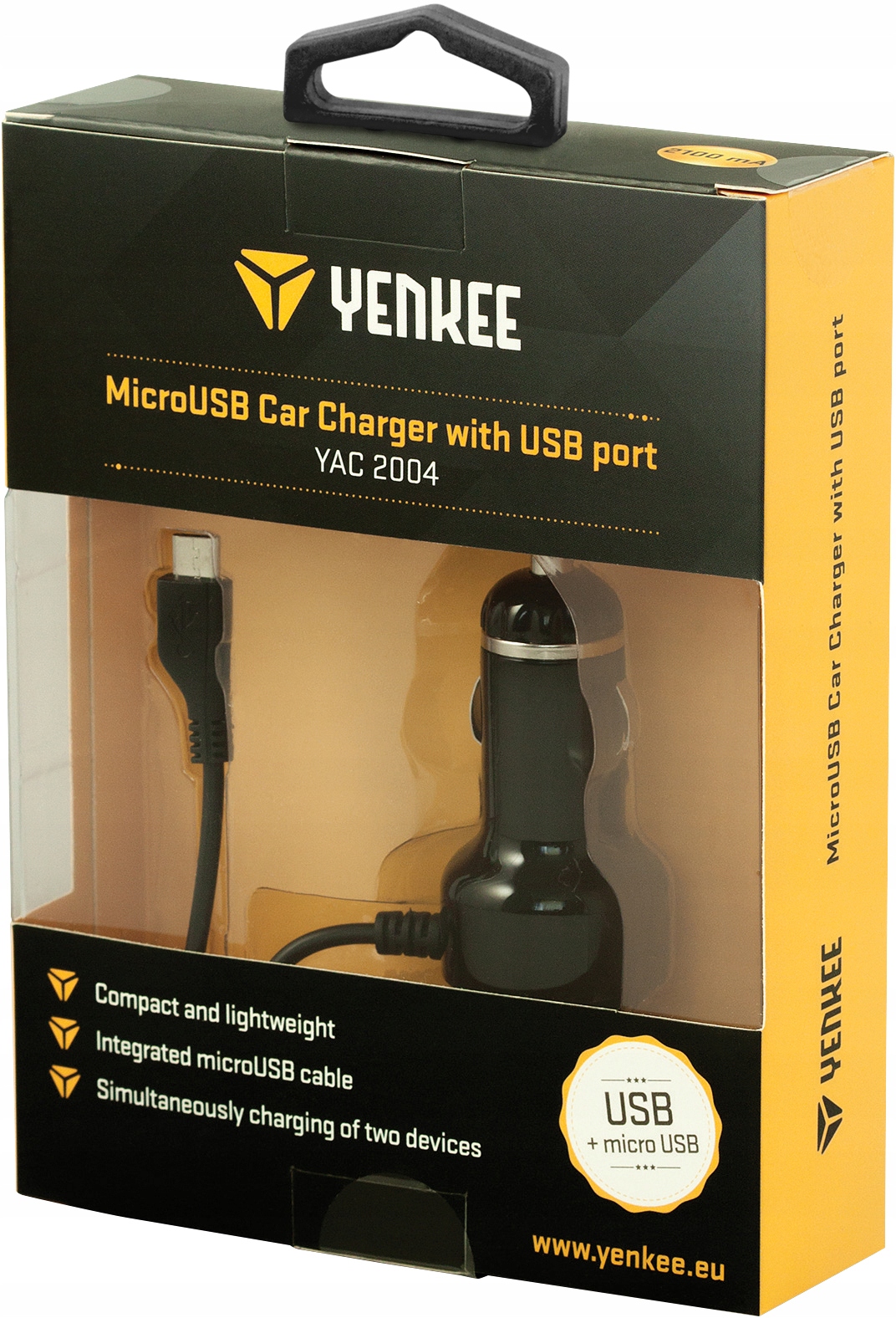 Автомобильное зарядное устройство со встроенным кабелем Micro USB (макс. 1,5 м) и дополнительный USB -порт. Совместим с широким спектром микро USB или USB.