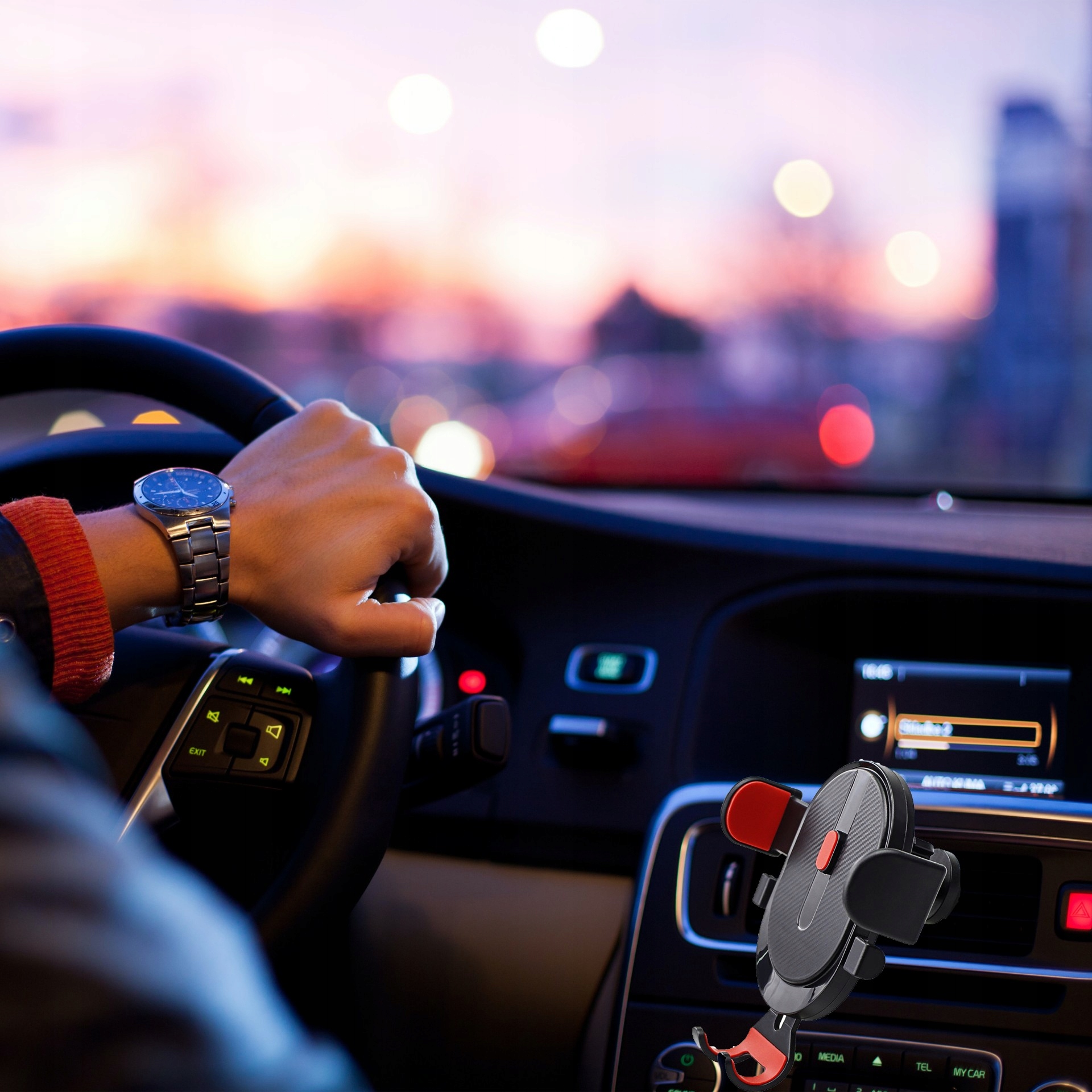 - Согнутые ручки надежно удерживают телефон даже при резком торможении.