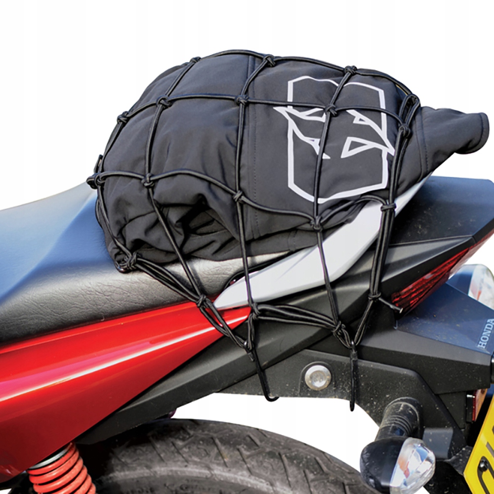 Сетка изготовлена из эластичных строп, оснащена 6 металлическими крючками для фиксации багажа. изготовлен из твердого, прочного и гибкого материала. Это идеальное решение для каждого моторизованного пользователя.