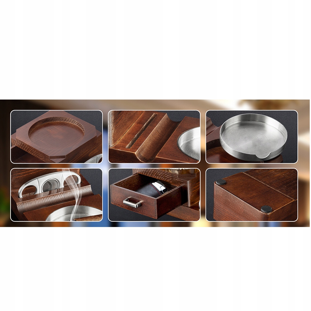 изготовлен из точно изготовленной, толстой древесины и алюминия с высокой плотностью, ручной, съемной пепельницы. Красивый и долговечный. Это уникальная пепельница, разработанная курильщиками сигар. Это хороший коллекционер. Его основные особенности - прочность, сопротивление износу, падения и водостойкость.