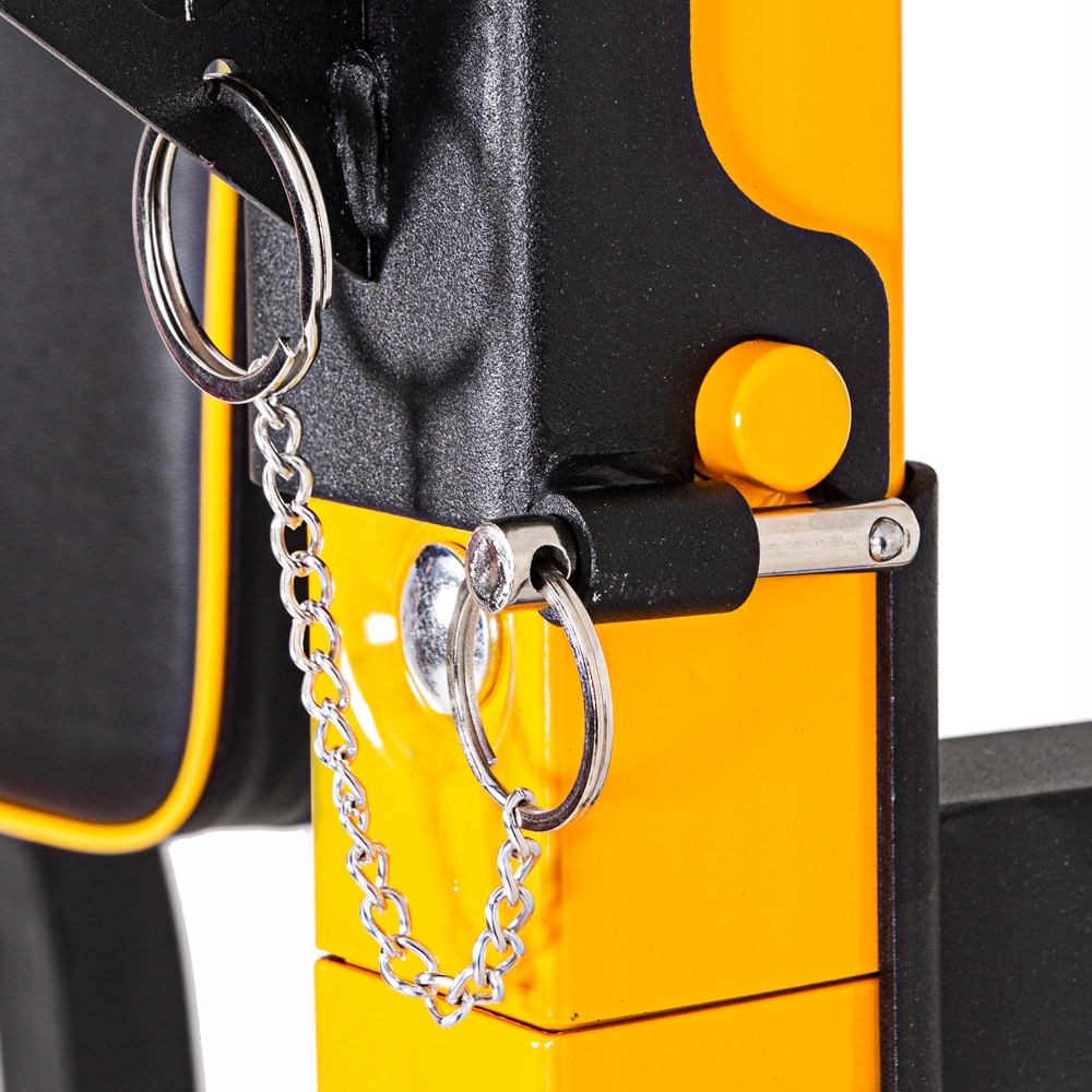 Поскольку вы можете регулировать высоту подставки для штанги в 11 положениях, вы можете тренироваться стоя или на силовой скамье.