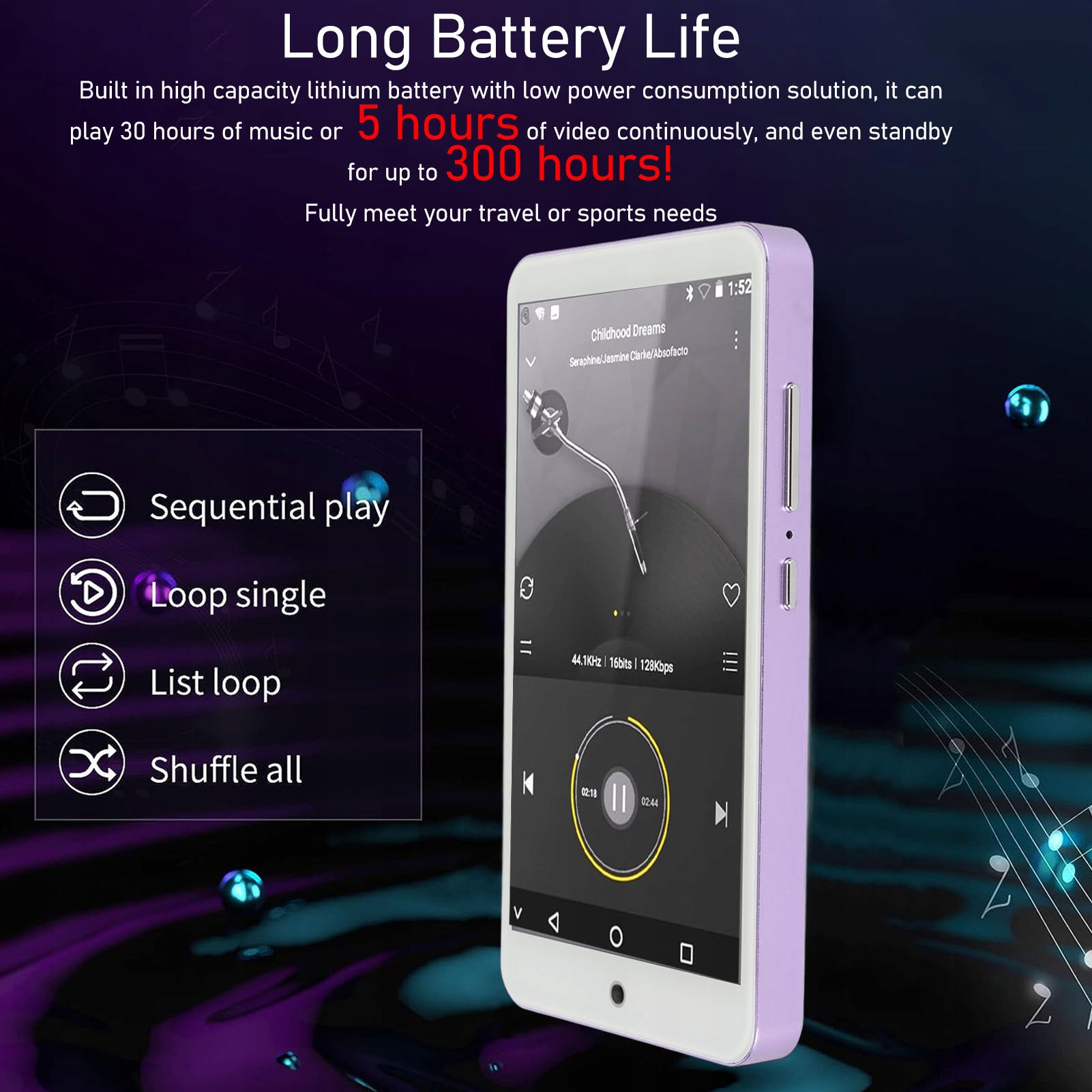 MP4-плеер с Bluetooth и Wi-Fi, Hi-Fi аудио, 5,0-дюймовый портативный MP4-плеер с сенсорным экраном и наушниками Bluetooth.