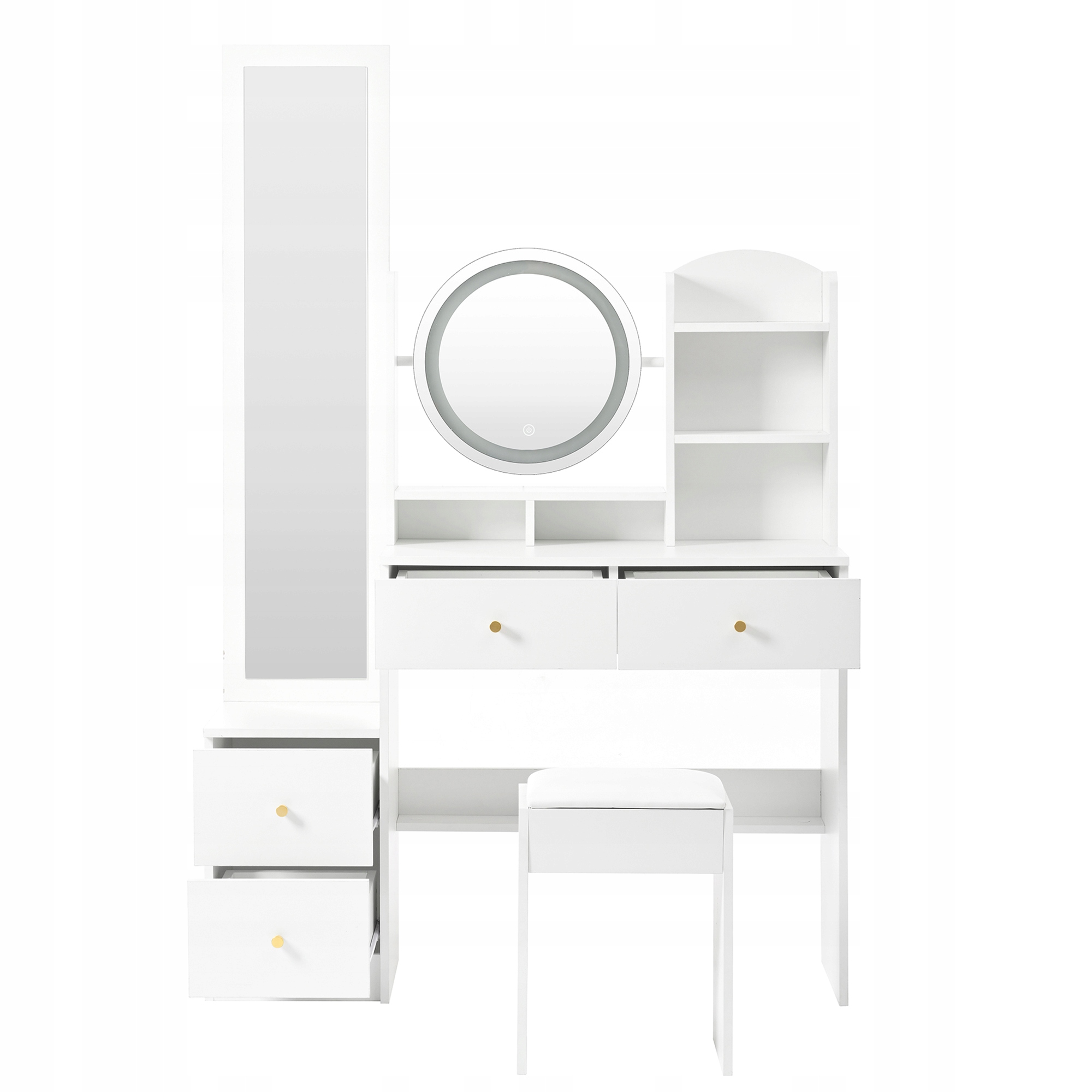 Стол для обуви и макияжа 4 в 1 с полноразмерным зеркалом и зеркалом ротажного стола, туалетном стул, 3-цветового светодиодного освещения, металлическая ручка, белая, размеры: высота 164 см × ширина 109 см. Ширина 36 см.