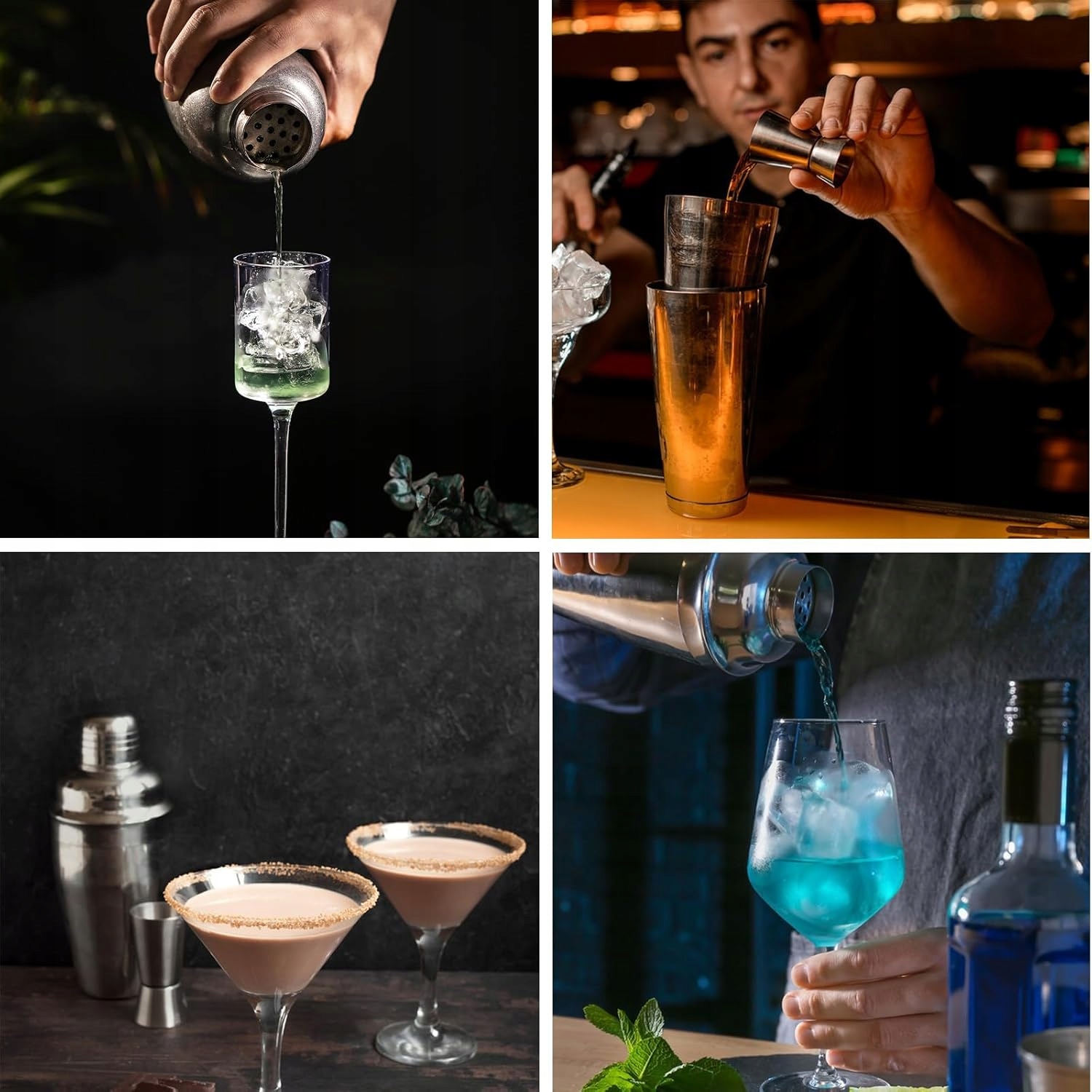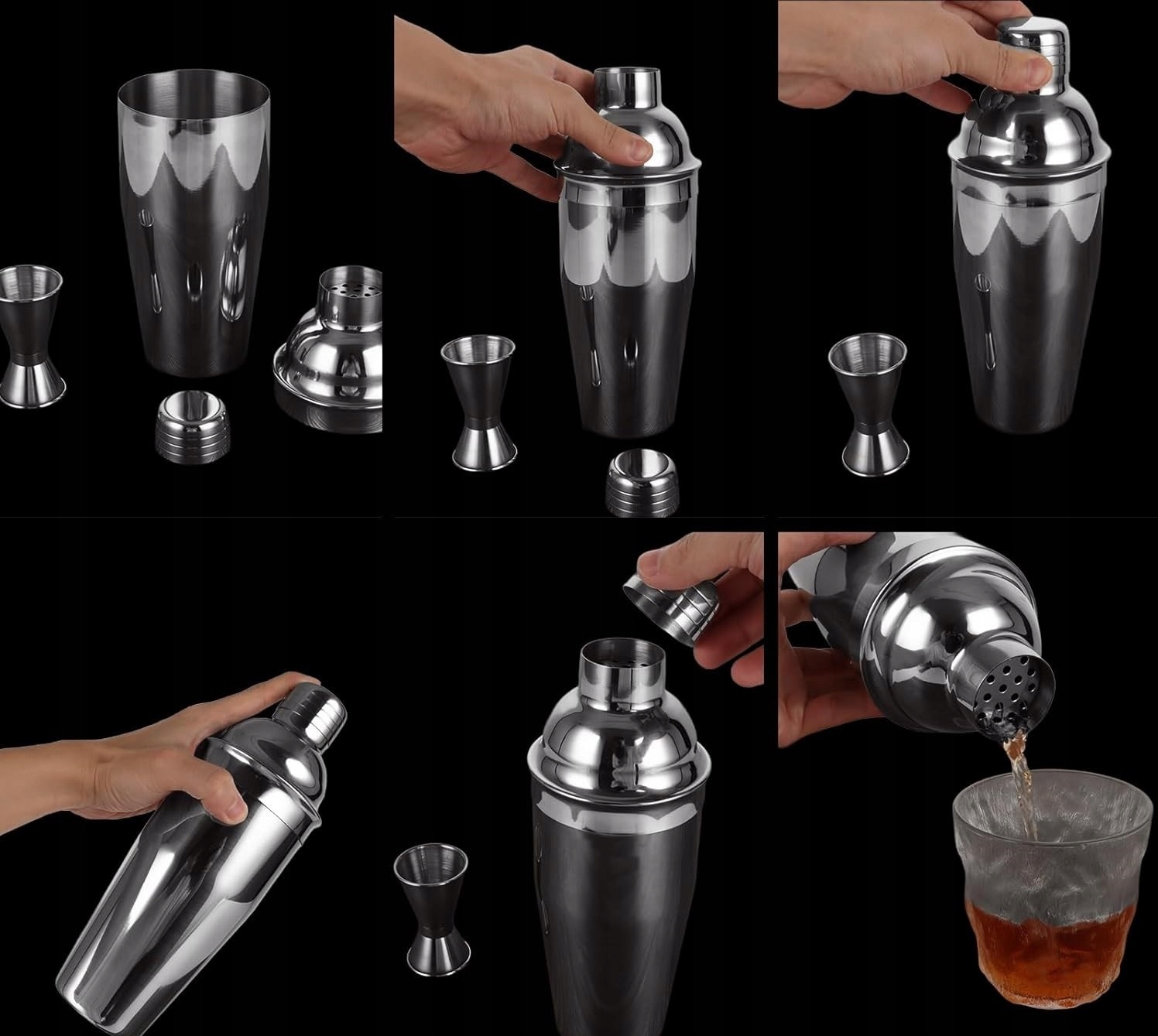 - Этот коктейльный набор содержит 1 x 350 мл и 1 x 750 мл шейкера для коктейлей, 3 размера мер для коктейлей 15/30 мл, 30/50 мл и 30/60 мл. Сделайте свои напитки более точными благодаря этому профессиональному инструменту барменов, который позволяет быстро и легко приготовить самые сложные напитки без беспорядка или плохого смешивания ингредиентов.