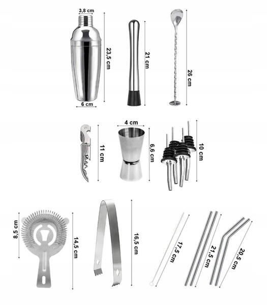 Представленный набор барменов состоит из 23 элементов, из которых вы можете приготовить необычные и красочные напитки. Все детали изготовлены из нержавеющей стали с высоким качеством и необычной сопротивлением различным жидкостям, которые будут в нем. Благодаря большому размеру, набор барменов предоставляет все необходимые инструменты для простого и точного смешивания, измерения, встряхивания и напряжения ваших любимых напитков. Попробуйте свою руку как бармен!