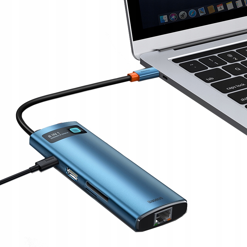 Используйте адаптер Baseus для мгновенной передачи файлов (500 МБ) /с), быстро заряжать устройства (PD 100W) или отображать файлы на большом экране в отличном качестве (4K@30Гц). Благодаря WKWG000003 вы также получите более быстрый доступ к Интернету. Аксессуар оснащен целыми 8 портами, поэтому вам больше не придется беспокоиться об отсутствии соответствующих входов на телефоне, ноутбуке и т. д. Дополнительно светодиодный индикатор проинформирует вас о состоянии устройства.