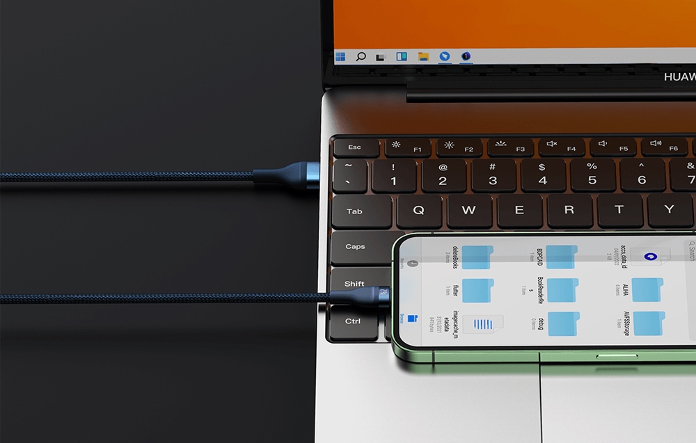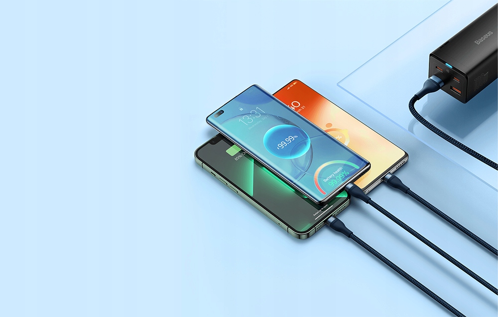 Кабель позволяет осуществлять быструю зарядку мощностью до 66 Вт. Благодаря этому всего за 30 минут вы сможете зарядить свой Huawei Mate40 Pro смартфон до 86% или Huawei P40 до 64%. Продукт также позволяет быстро заряжать устройства iPhone, Samsung или Xiaomi. Более того, инновационная технология Power Split равномерно подает питание на подключенные устройства, что гарантирует безопасность во время зарядки.