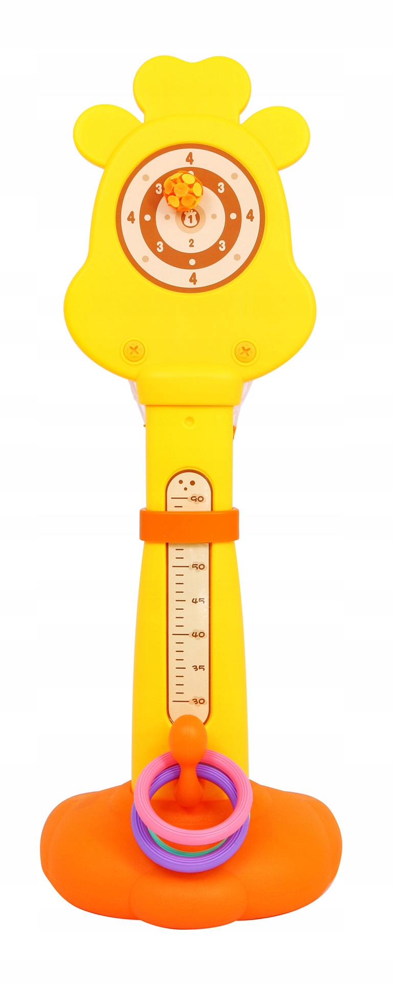 Сзади на подставке имеется крючок для игрового кольца, а на подставку можно наклеить идущую в комплекте наклейку с мерным стержнем.