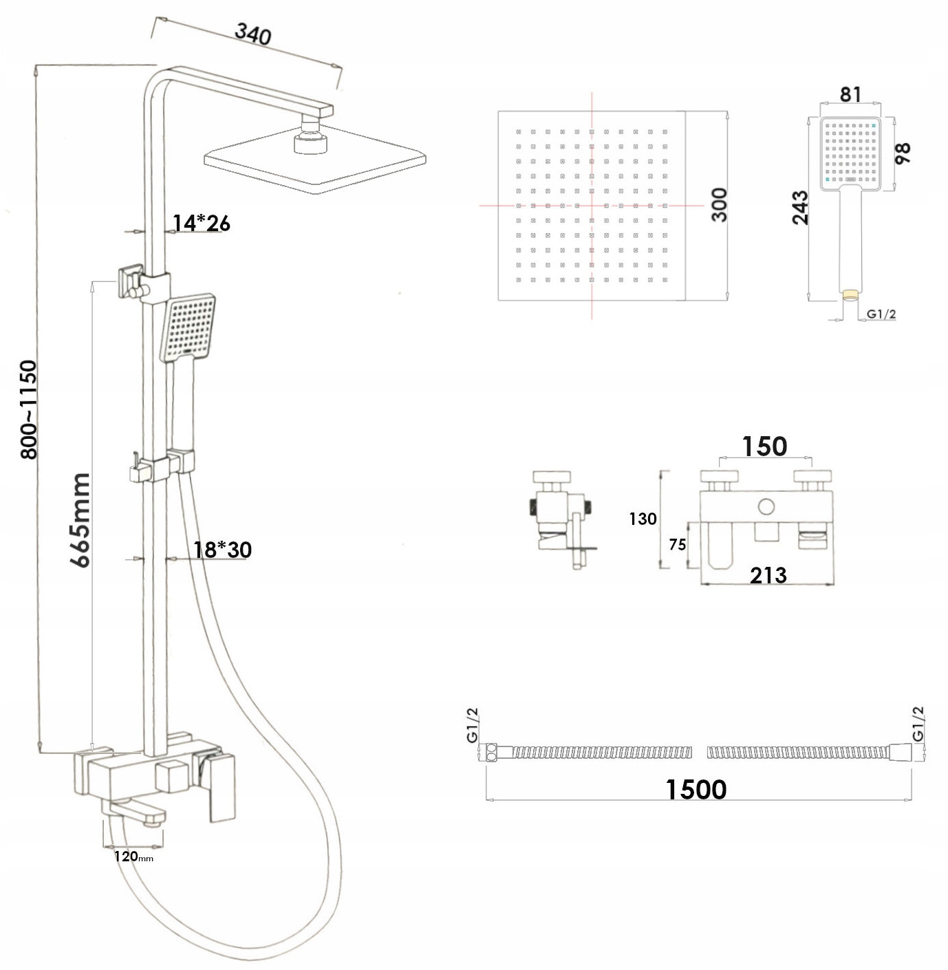 батарея с брызги с ванной, дождь душ 25 х 25 см и телефон h1>
