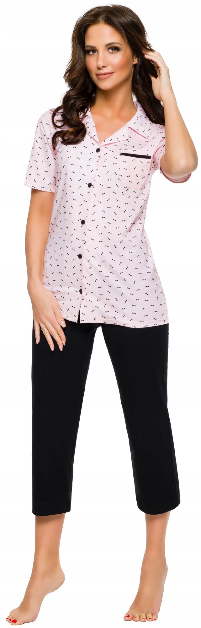 Женская пижама с воротником - короткий рукав - штаны 7/8