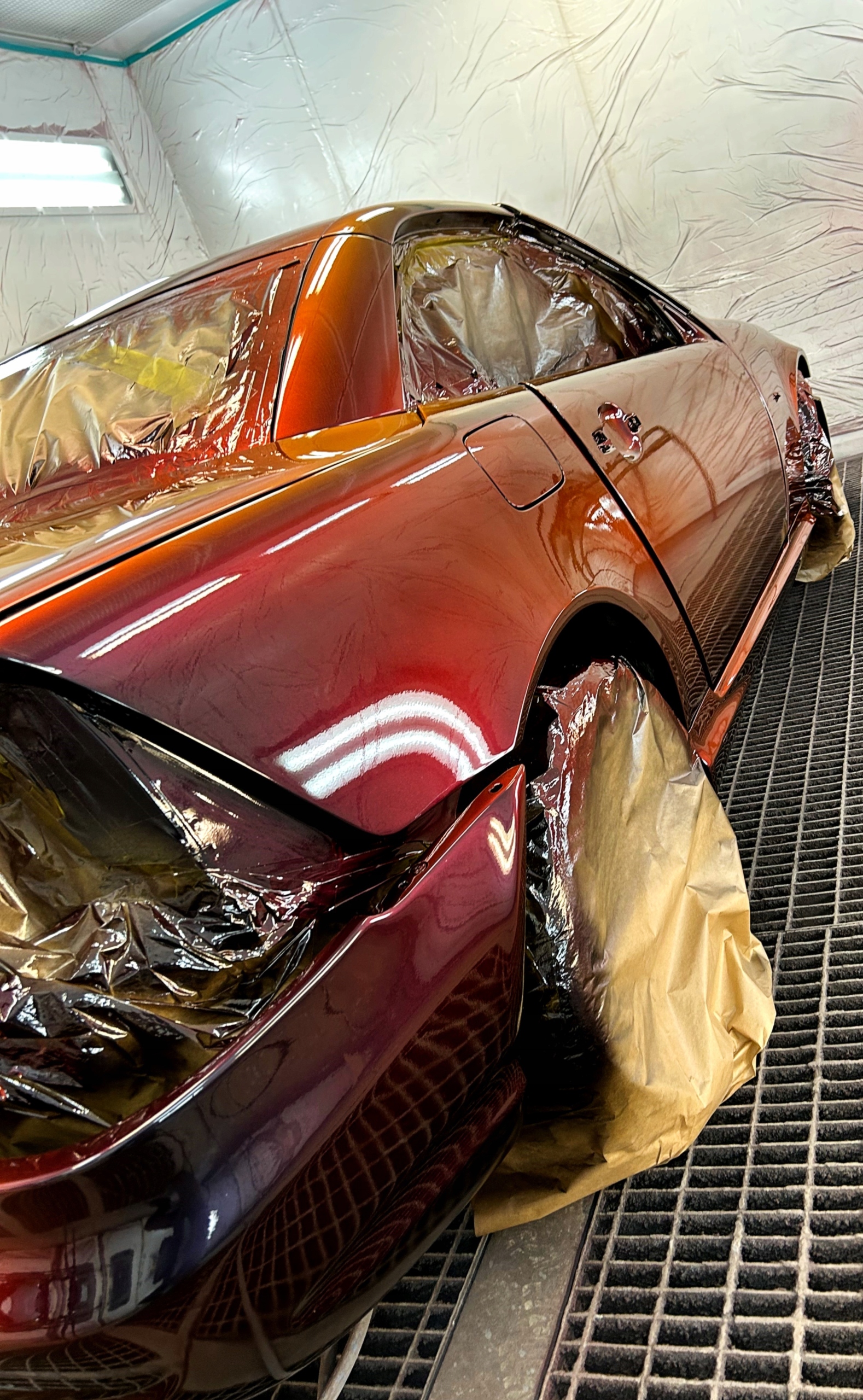 Разбавьте базу Камелеон в пропорции 1:1 разбавителем базы и нанесите базу. нанесите покрытие до черной поверхности. Распылите краску двумя или тремя тонкими слоями с интервалом около 10 минут. При окраске пистолетом необходимо использовать систему HVLP. Рекомендуемый размер сопла составляет от 1,3 до 1,4 мм. После нанесения последнего слоя оставьте Камелеон примерно на 40 минут и приступайте к третьему этапу, т. е. прозрачному лаку. На этом этапе Камелеон должен высохнуть, чтобы его можно было протереть антистатической тряпкой.