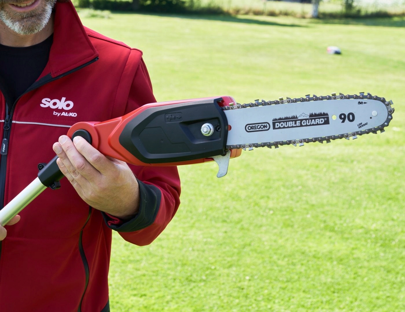 Длина направляющей – очень важный аспект, определяющий выбор бензинового секатора. Это рабочий элемент, на котором расположена цепь – чем длиннее направляющая, тем больше и универсальнее возможности использования пилы. Представленная насадка-секатор для устройства Solo от AL-KO оснащена прочной фирменной направляющей OREGON длиной 25 см, что делает ее идеальной как для приусадебного участка, так и для сложных работ в саду. Возможность регулировки рабочего угла в 9 положениях.