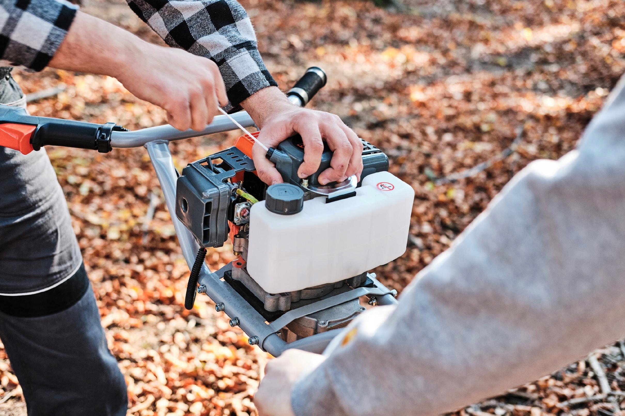 ✔️ Перед началом работы с устройством заполните топливный бак заранее приготовленной топливно-масляной смесью