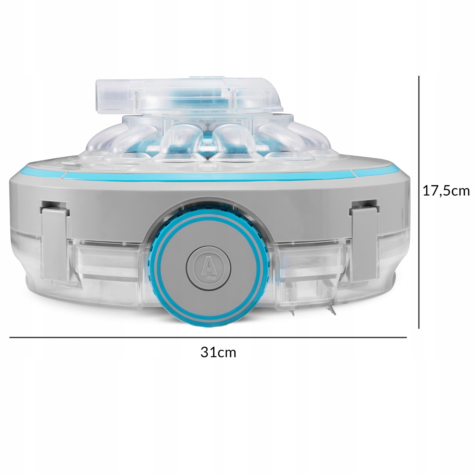 Переносить устройство особенно легко благодаря практичной ручке. Инновационный корпус из ударопрочного АБС-пластика делает изделие долговечным. Устройство подходит как для небольших, так и для больших бассейнов. В комплект входит зарядная станция и очень мелкая фильтрующая сетка из нержавеющей стали. Для снятия и очистки фильтра не требуются инструменты.