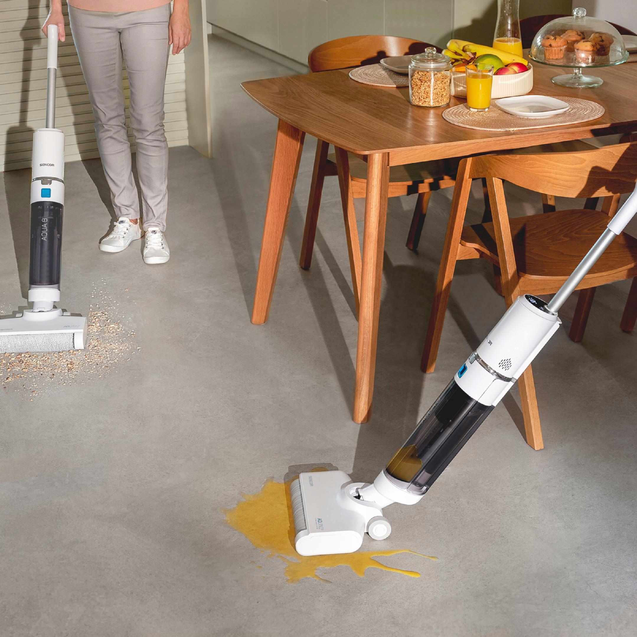 Это устройство обеспечивает комплексную очистку твердых полов - благодаря влажной и сухой функции. Таким образом, вы можете быть уверены, что вы можете справиться с любой грязью. Устройство имеет два отдельных контейнера для чистой и грязной воды, что повышает уровень гигиены и эффективность очистки. Ваши полы будут сиять, независимо от того, нужно ли вам собирать свободные материалы из них или очистить сушеные места.