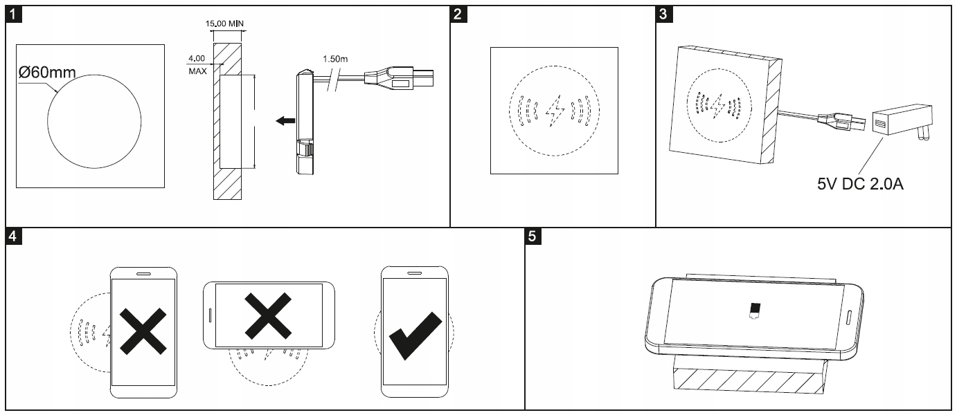 Внимание! Размещая зарядное устройство на столешнице, помните о расстоянии беспроводной зарядки, которое составляет <4 мм. (Рис. 1)