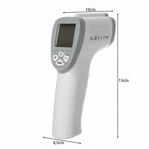 Предмет продажи - очень простой в использовании бесконтактный термометр для измерения температуры тела и любых поверхностей. Для использования как дома, так и в общественных местах. Удобная форма «пистолета» идеально подходит для измерения температуры, например, во время пандемии. Чтобы измерить температуру, просто поднесите термометр ко лбу на расстоянии 3-5 см и нажмите кнопку на ручке. Термометр питается от 2 батареек типа ААА по 1,5 В (не входят в комплект).