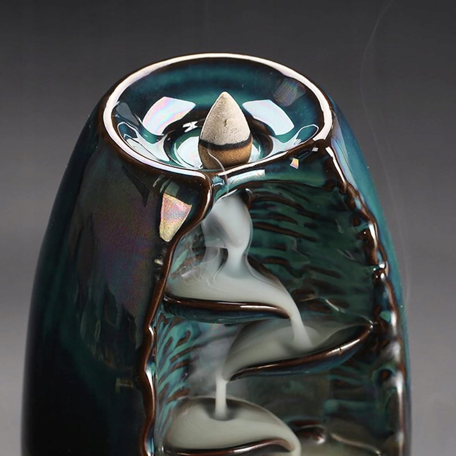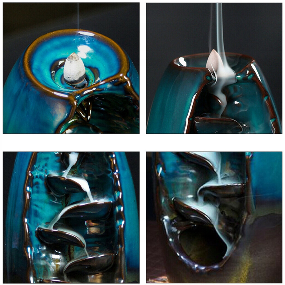- Камин с водопадом для ладана изготовлен из керамики и сделан квалифицированными мастерами в традиционном стиле с превосходными ручными. Керамический кран с обратной связью, яркий и полный текстур. Горелка благовоний принимает чередующуюся дизайн левого и правого листа, который не только разбивает одно ощущение, но также делает текущий дым накапливается слева и вправо, вверх и вниз вместе, а не в спешке или медленно, а фонтан дымового ароматерапии, как скалевая земля