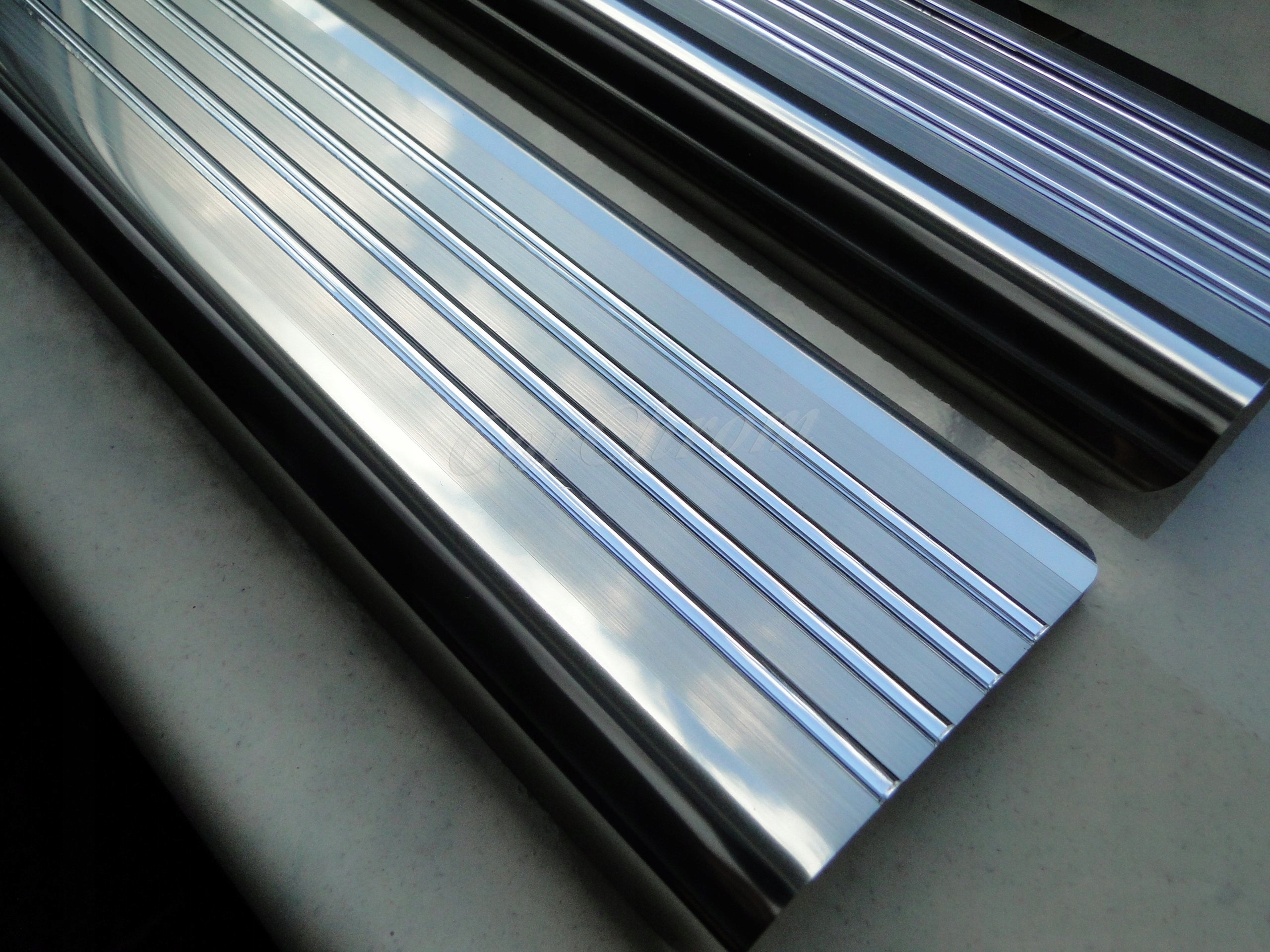 Накладки на пороги изготовлены из глянцево-матовой нержавеющей стали, с загибом кромки. Мы гарантируем идеальное соответствие профилю порога.