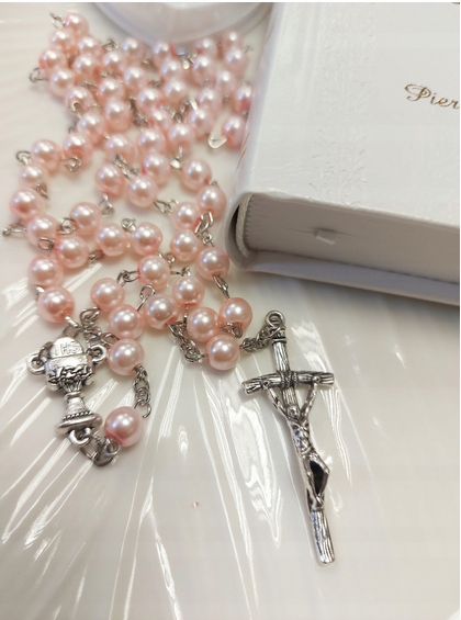 Чётки для Первого Причастия в форме шарик – жемчужно-розовый.