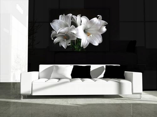 Білі лілії на чорному тлі Картина полотна, 80x60 см