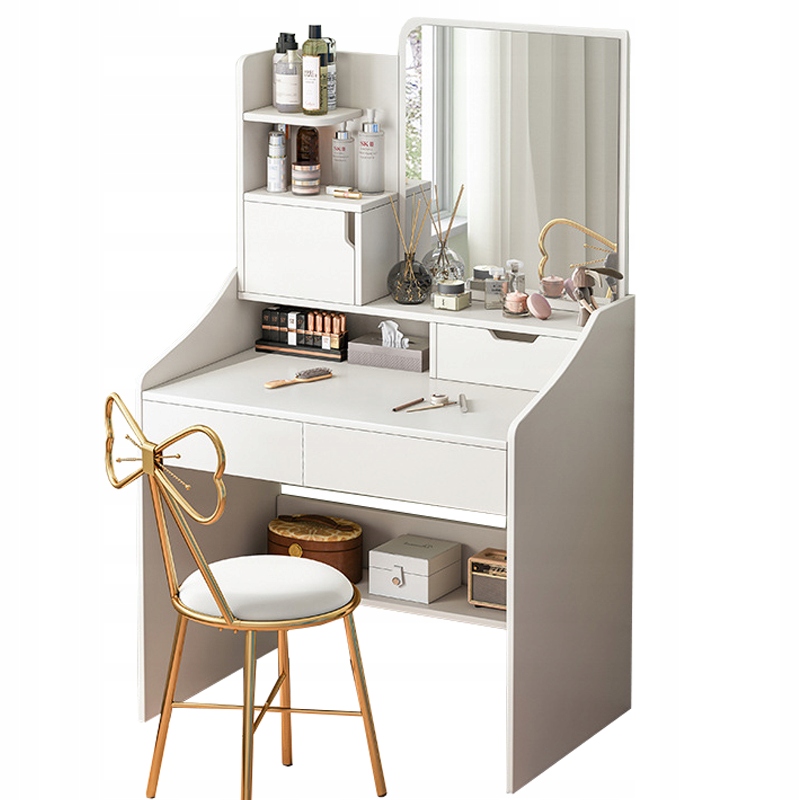 БІЛИЙ ТУАМЕТНИЙ СТОЛИК З ГЛАМУРНИМ МАКІЯЖОМ З ЯЩИКАМИ В СКАНДИНАВСЬКОМУ СТИЛІ