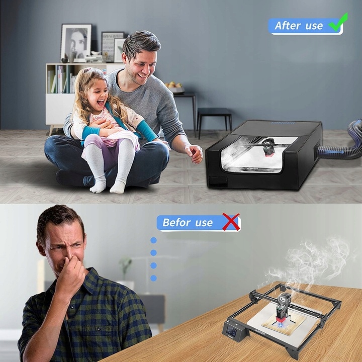 , разработанный с эффективной системой вентиляции, это корпус помогает сохранить лазер холод во время использования, снижая риск перегрева. Вентиляционные отверстия позволяют свободно циркуляцию воздуха, гарантируя, что лазерная гравюра останется прохладной, а эффективное удаление запаха дыма - лучше всего.