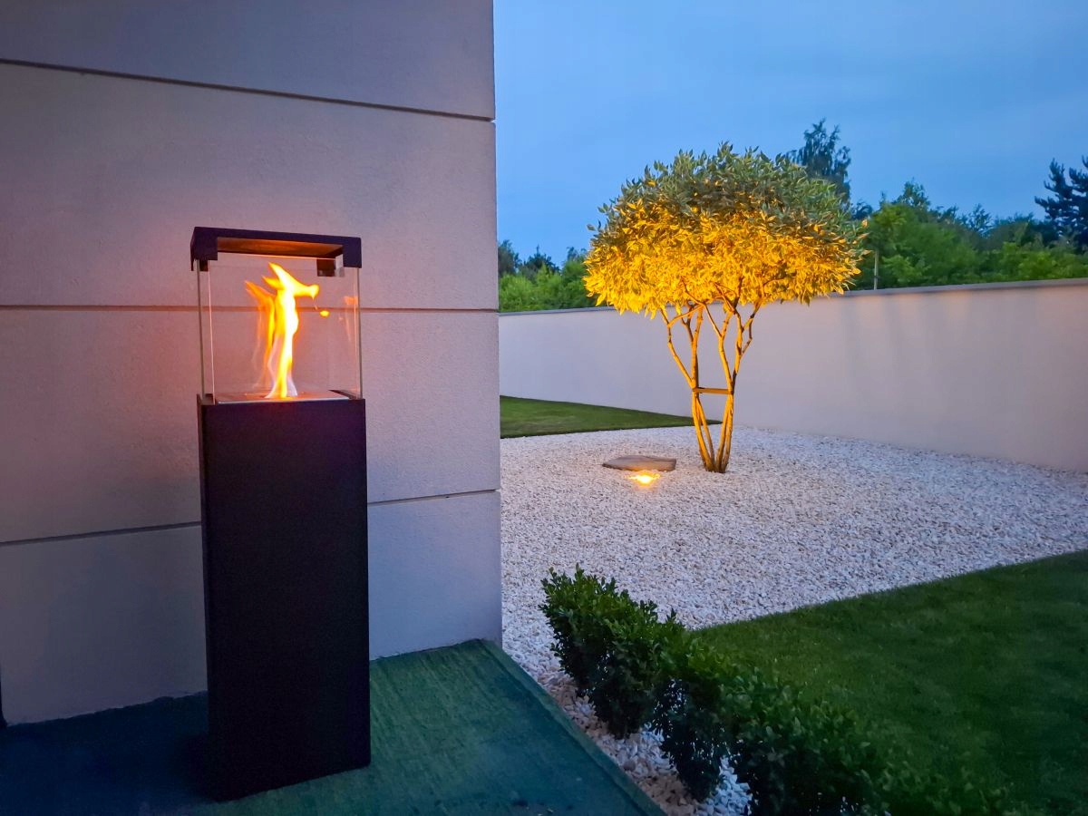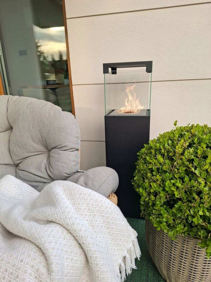 В благоприятных погодных условиях био -камин также может быть помещен на террасу или на балконе. В случае осадков мы рекомендуем защитить био -камин.