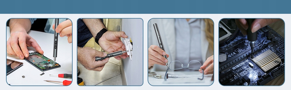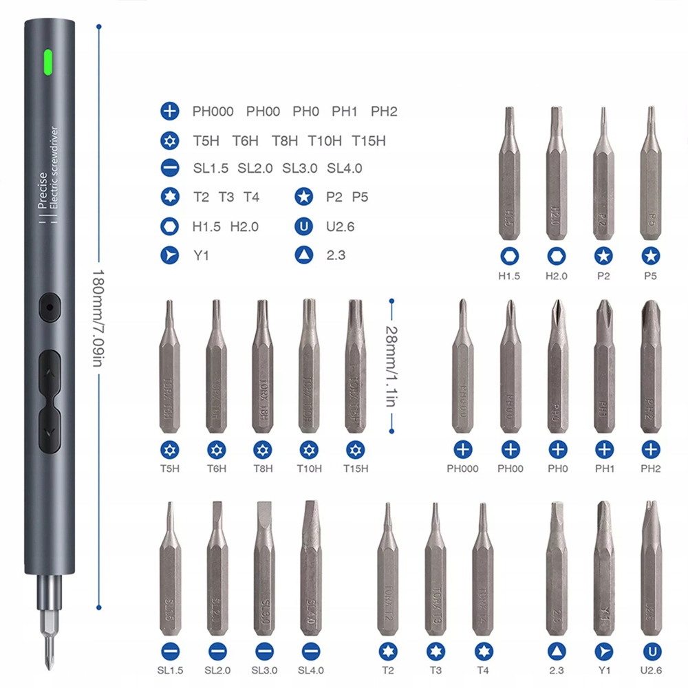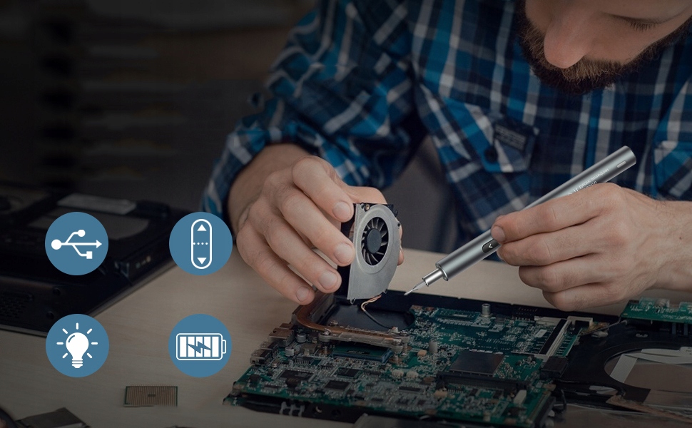 - Этот набор инструментов для ремонта компьютера и мобильного телефона имеет встроенную батарею, которая после полного заряда может ввести 300 винтов. Электрическая отвертка экономит время и энергию.