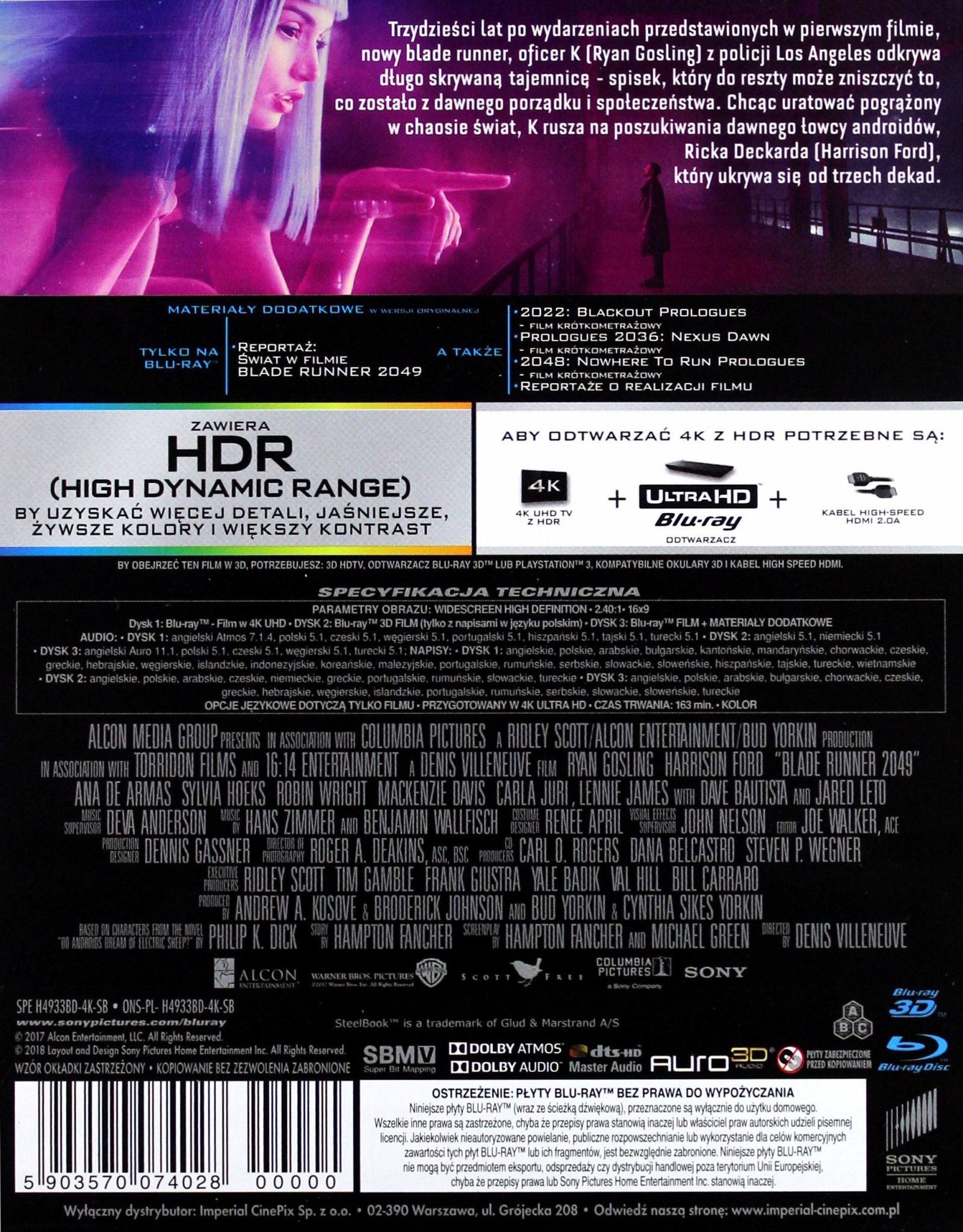 Примечание. Указанные параметры звука и субтитров относятся к диску Blu-Ray 4K. На диске Blu-Ray нет версии на польском языке.