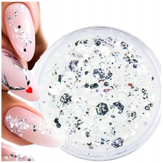 Полупрозрачный оттенок сверкающего белого цвета – классика, идеальная для любого случая. Наносите на светлые оттенки, чтобы получить нежный мерцающий розовый с оттенком бирюзового сияния, на темные оттенки – для более яркого, насыщенного. более выразительный эффект с акцентом бирюзы. Добавьте своим ногтям оригинальность и блеск! Не бойтесь и привлекайте внимание неповторимым маникюром! Выделитесь из толпы и провоцируйте своим блеском! Покажите себя в новой версии. Идеальная пропорция феноменальной ювелирной пыли с частицами различной толщины, отражающими свет, как зеркало. Перейдите в новое измерение Bling Bling и откройте для себя коллекцию из 10 ювелирных частиц. Добавьте уникальности и оригинальности вашему стилю.