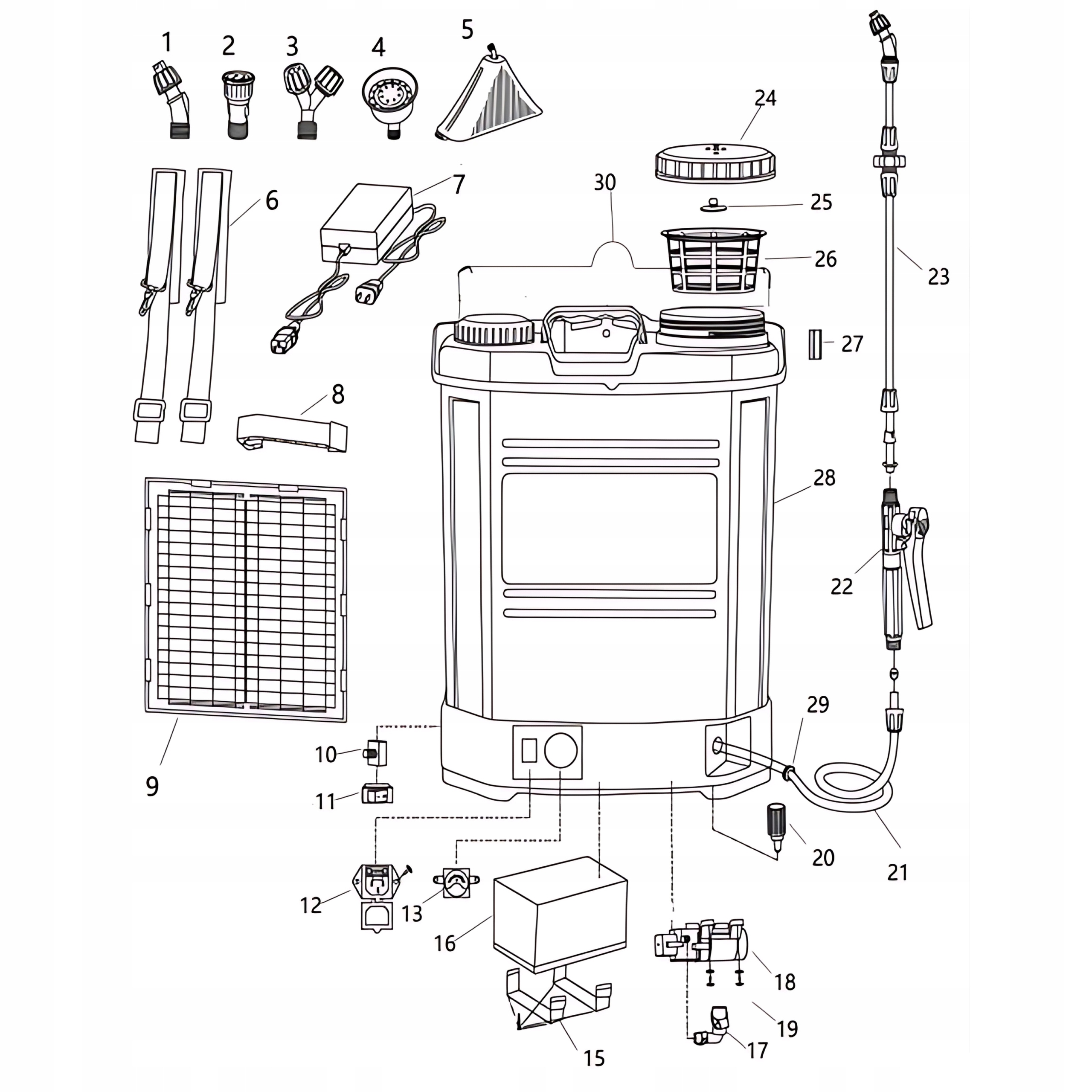 ➡ Работайте дольше, без зарядных перерывов - экологический и эффективный распылитель аккумулятора с солнечным верхним верхом! h2> - 1⃣ Солнечная панель 15 Вт b> - непрерывная перезарядка батареи при работе на солнце.