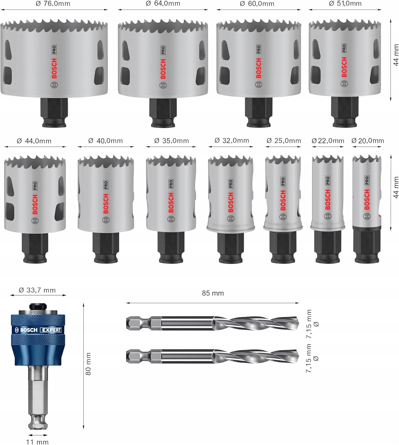 Bosch Set of Hoolbers 14 x Pro Multi Material Pruck 20 76 мм