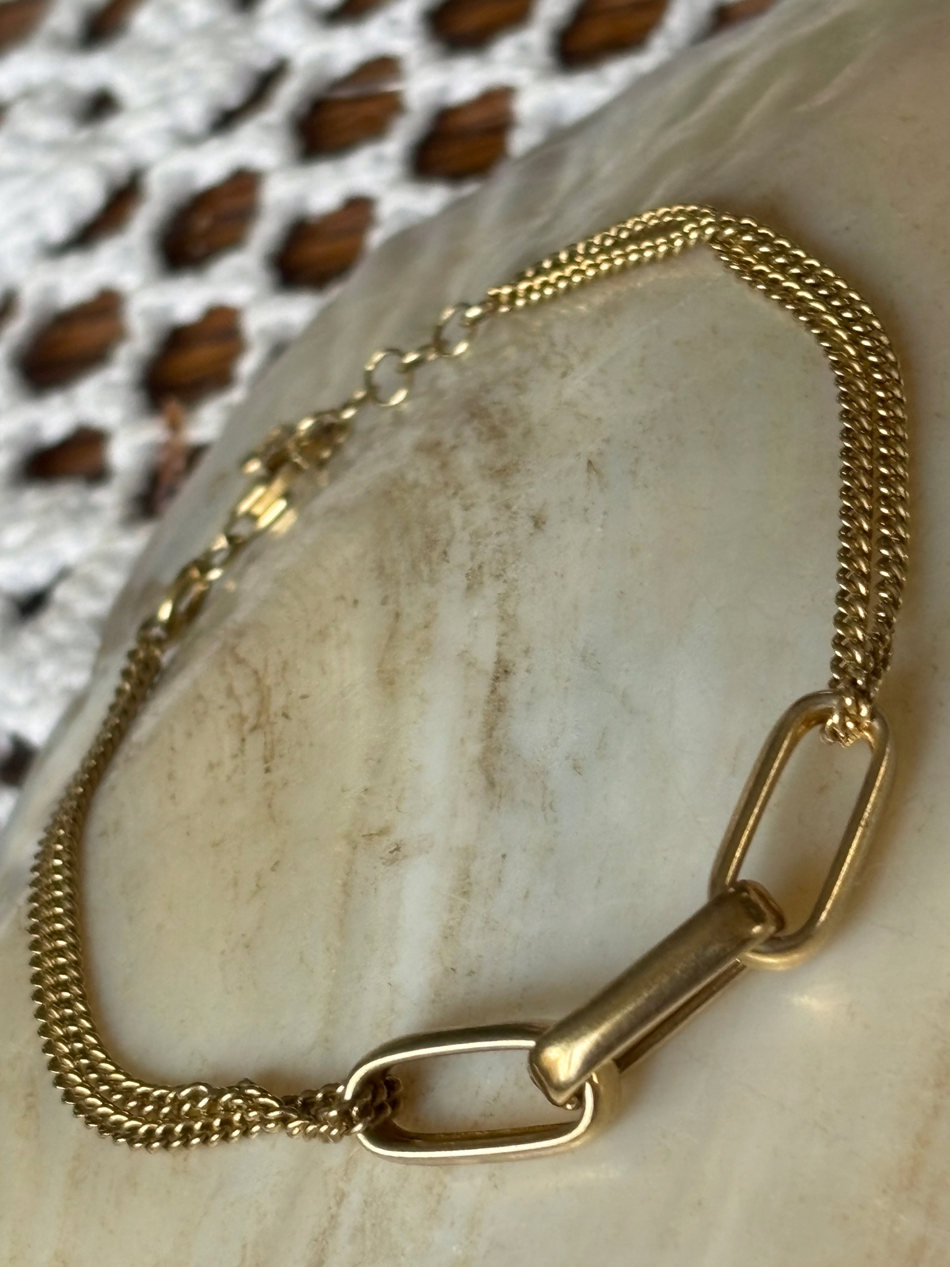 Bransoletka stara srebrna złocona łańcuszek