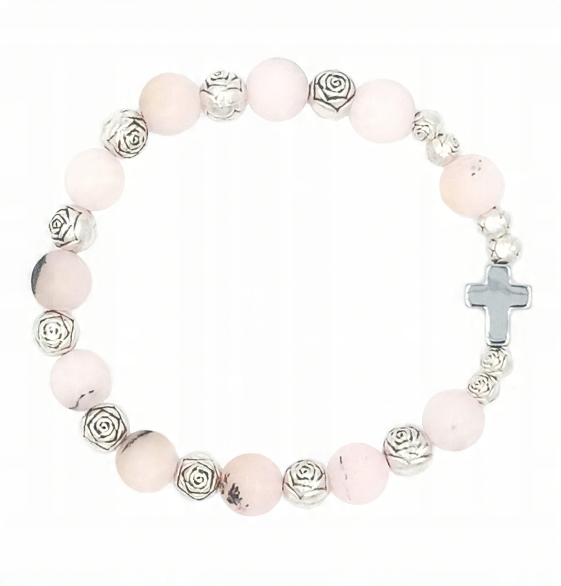 Введите немного элегантности и духовности с этим уникальным женским браслетом в свою повседневную жизнь. Деликатные 8 мм розовые опальные бусы объединяются с металлическими розами, которые были тщательно продуманными в Италии, гарантируя их долговечность и красоту. Важно отметить, что этот браслет - не только добавление -он - благодаря этому, вы можете отрицать десятки розария , всегда имея с вами молитвенный инструмент. Ношение комфорта обеспечивает гибкий эрастик ювелирных украшений , который идеально адаптируется к каждому запястью. Целое дополняется серебряными деталями и Cross , которые добавляют к нему уникальный персонаж. Предлагается в красивой подарочной коробке , ручной работы в Польше браслет станет уникальным даром для каждой женщины с глубокой верой.