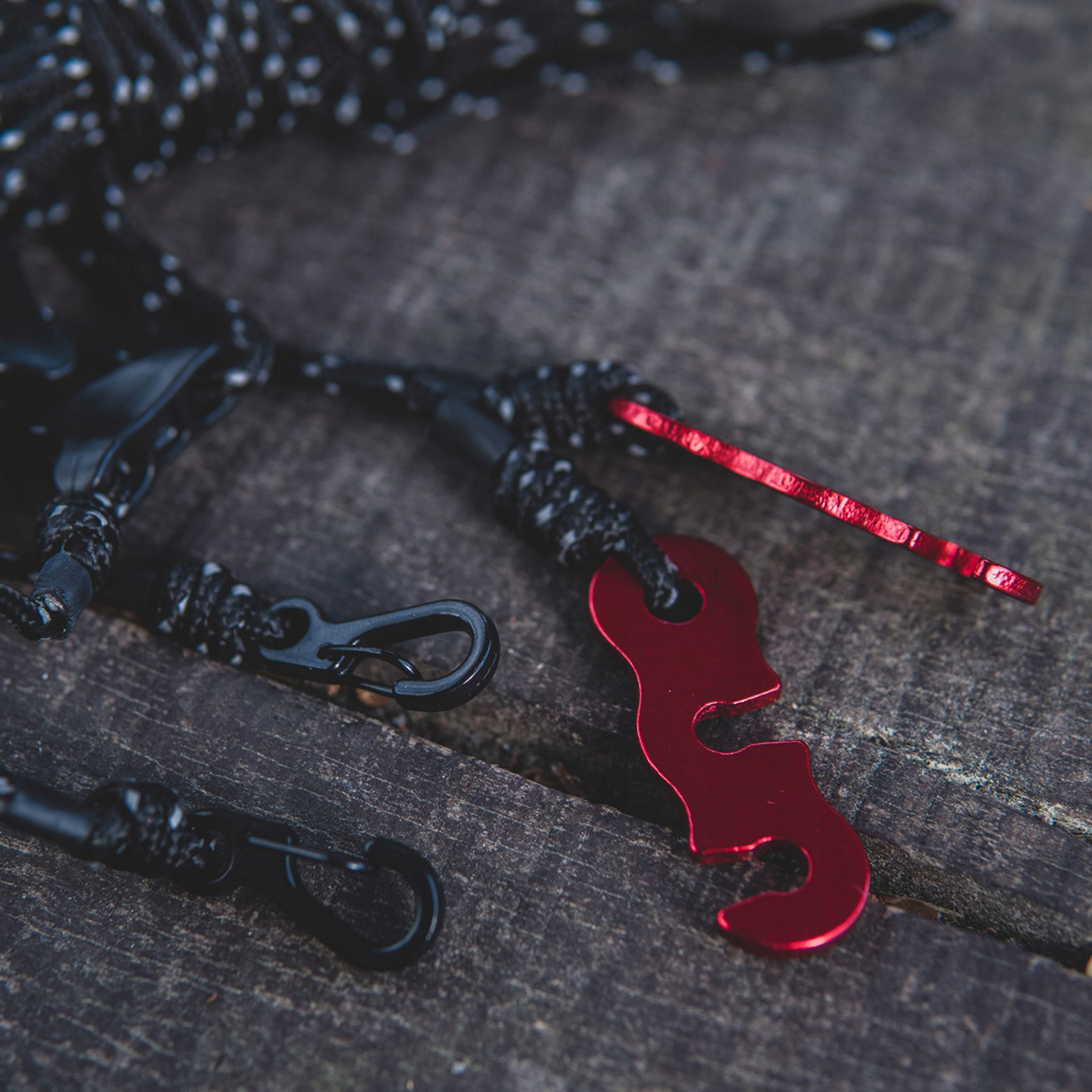 Система быстрого подвешивания брезента позволяет легко и быстро повесить походный брезент между деревьями без необходимости использования узлов. Основанная на прочных и влагостойких стропах, эта система прекрасно работает даже в сложных погодных условиях, обеспечивая надежность и стабильность. Благодаря скользящим пряжкам TigerWood Silk можно точно регулировать натяжение брезента, а светоотражающие акценты облегчают поиск лески в ночное время. Данную систему легко транспортировать благодаря компактным размерам в сложенном виде.
