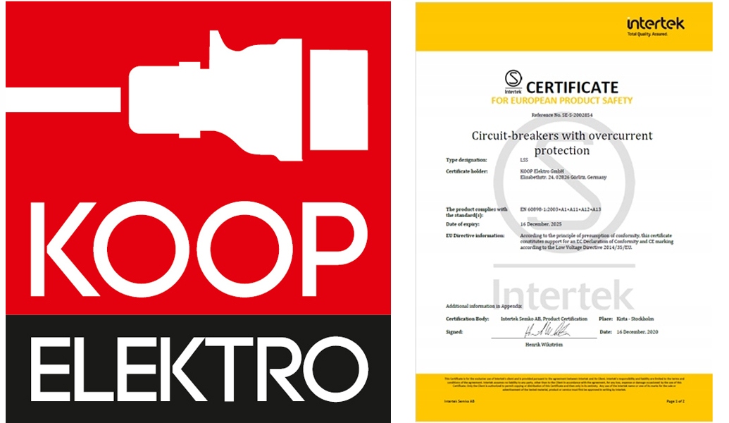 Камеры Koop Elektro были протестированы Независимой лабораторией Intertek и отмечены знаком, что подтверждает самый высокий уровень безопасности продукта в Европейском союзе.