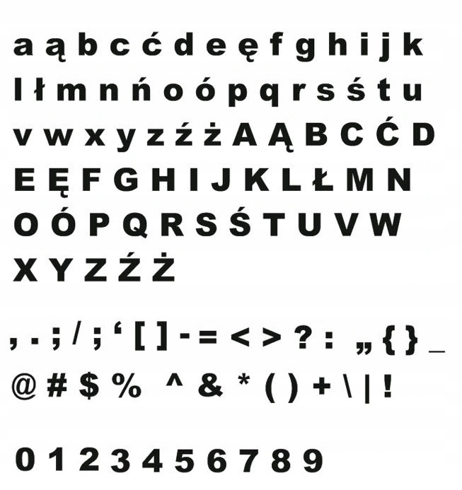 Высота измерена для А – доступны буквы, знаки и пропорциональные цифры согласно представленному ниже шаблону шрифта.