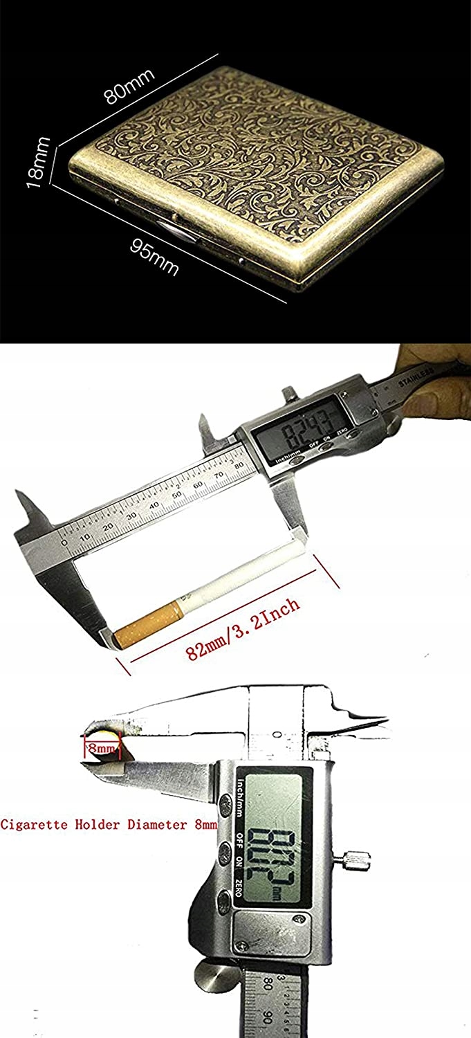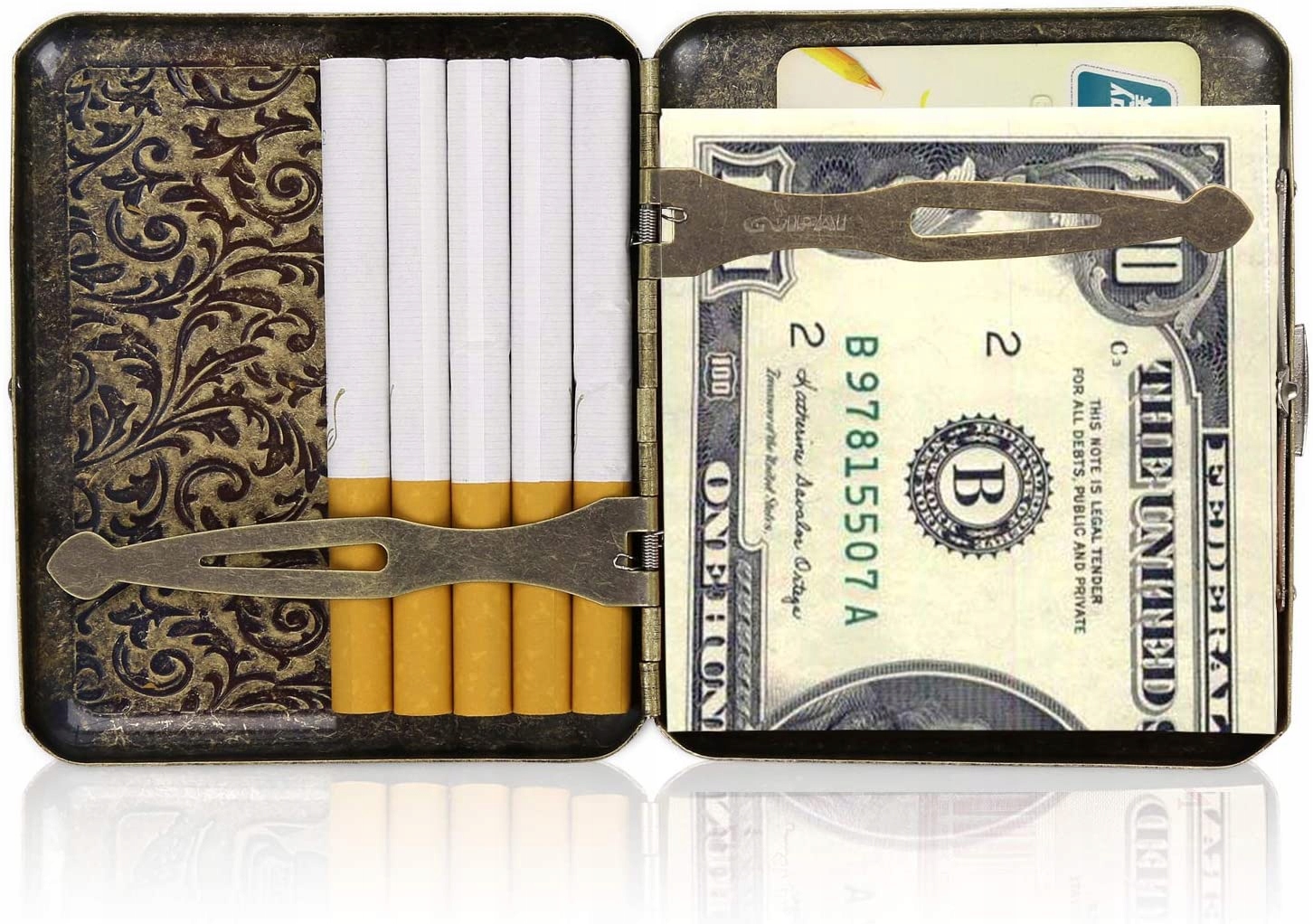 ВКЛЮЧАЕТ ДО 20 СИГАРЕТ: Компактный, очень крутой размер 9,5 x 7,9 x 1,5 см с пружинным зажимом с обеих сторон, чтобы все было на месте.
