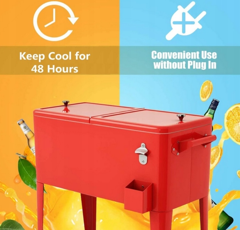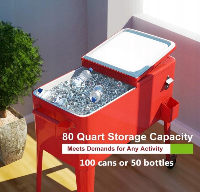 Высокая емкость: 76-литровый тепловой тележки может удерживать до 100 банок или более 50 бутылок и оснащено удобным дренажным отверстием с гайкой для легкой очистки > Отличная изоляция: тепловой грузовик имеет порошковой внешний металл и интерьер PP, чтобы обеспечить исключительную теплоизоляцию. Следовательно, он может держать напитки в холоде в течение нескольких дней (до 72 часов). носить. Кроме того, есть 2 тормозного колеса, которые позволяют вам остановить коляску, если это необходимо. Есть также металлическая боковая ручка для легкой струны и буксировки. На стороне есть удобный контейнер для бутылок и контейнер. Кроме того, существует также боковое отверстие с гайкой для облегчения выгрузки и очистки. Балкон и другие внешние среды и идеально подходят для любого случая, например, события, спортивные события или гриль
