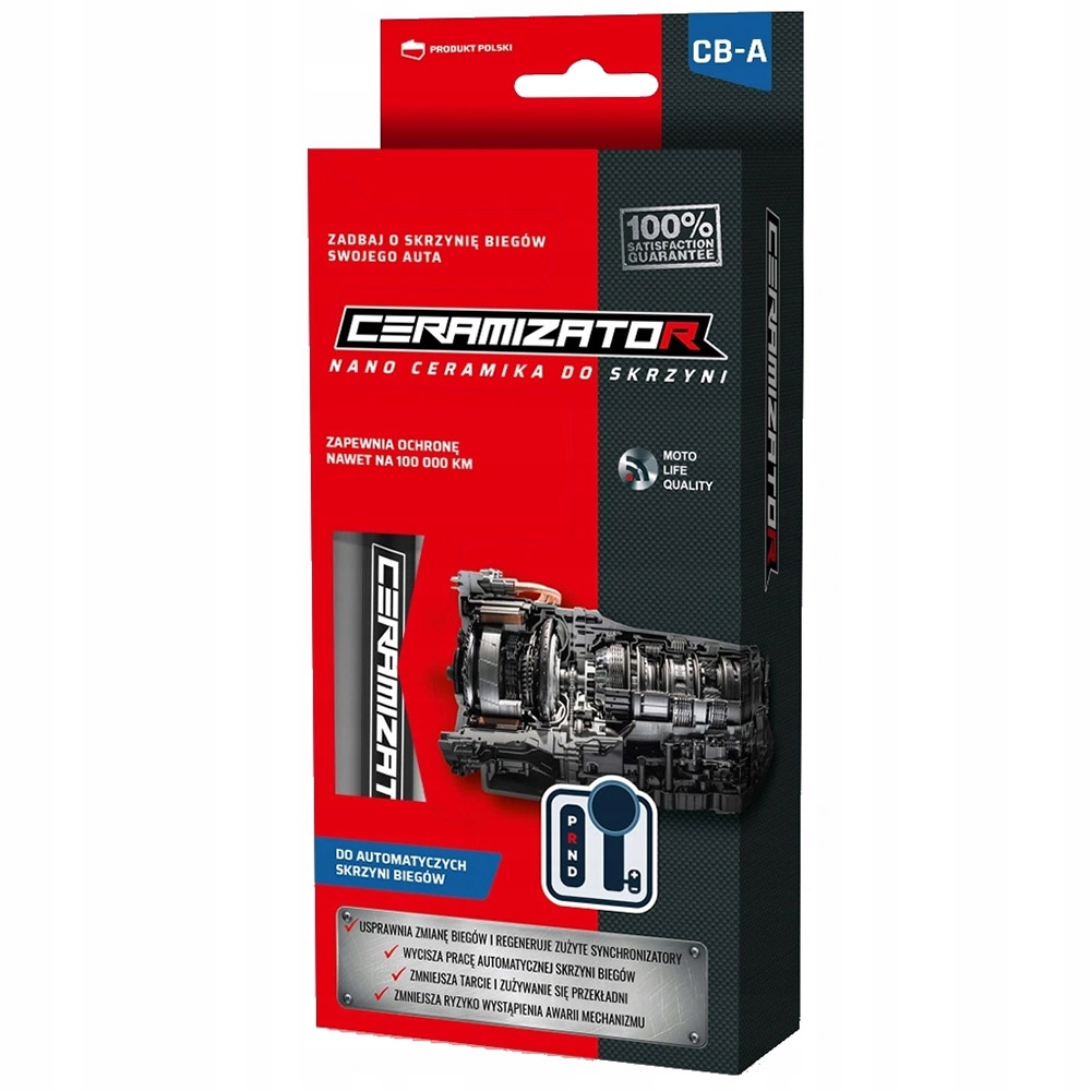 CERAMIZATOR CB-A — высококачественный препарат, предназначенный для защиты и восстановления автоматических коробок передач. Инновационная формула интеллектуальных наночастиц с высокой поверхностно-активной способностью проникает в структуру металла, создавая прочное, стабильное защитное покрытие (металлокерамика) с низким коэффициентом сопротивления и отличными свойствами теплопроводности. Это позволяет существенно снизить трение и обеспечить постоянную защиту компонентов, практически исключая процесс их износа. Регулярное использование позволяет значительно продлить срок службы коробки передач. Обеспечивает защиту на 100 000 HP. Рекомендуется для всех типов автоматических коробок передач, в том числе Tiptronic, Steprtonic, CVT.