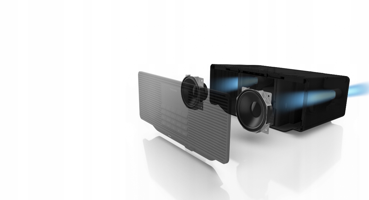D70BT оснащен двумя широкополосными динамиками шириной 8 см. Раздельные корпуса динамиков с обеих сторон приглушают внешний шум. Кроме того, порт фазоинвертора, расположенный сзади, обеспечивает воспроизведение глубоких басов. Это позволяет получить выразительный, качественный звук в компактном корпусе.