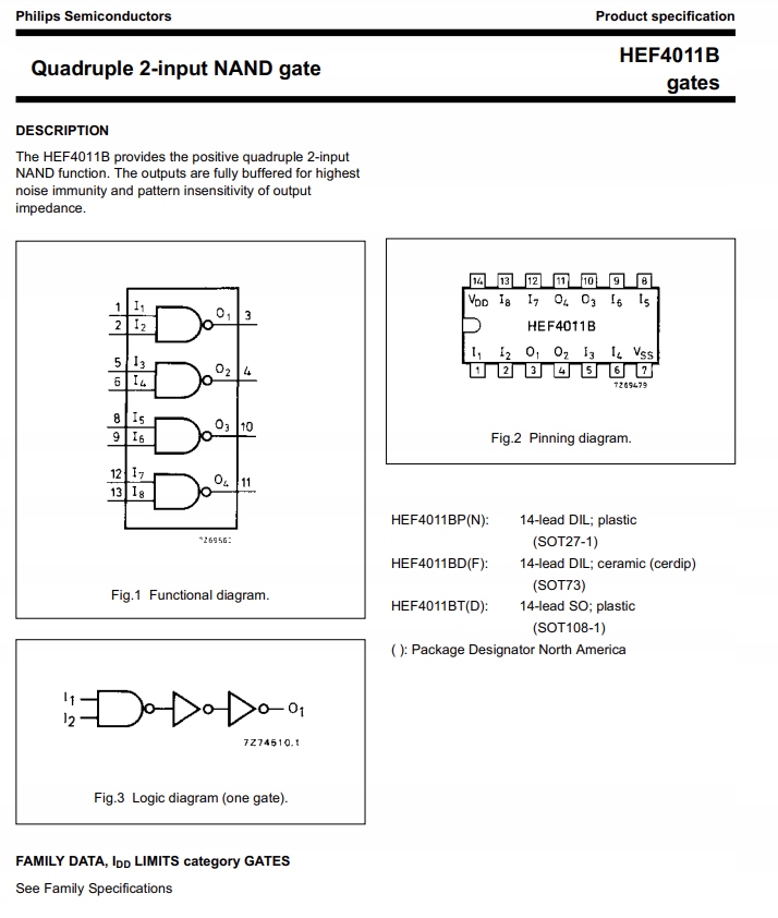 HEF4011B — это четырехвходовой вентиль NAND с двумя входами.