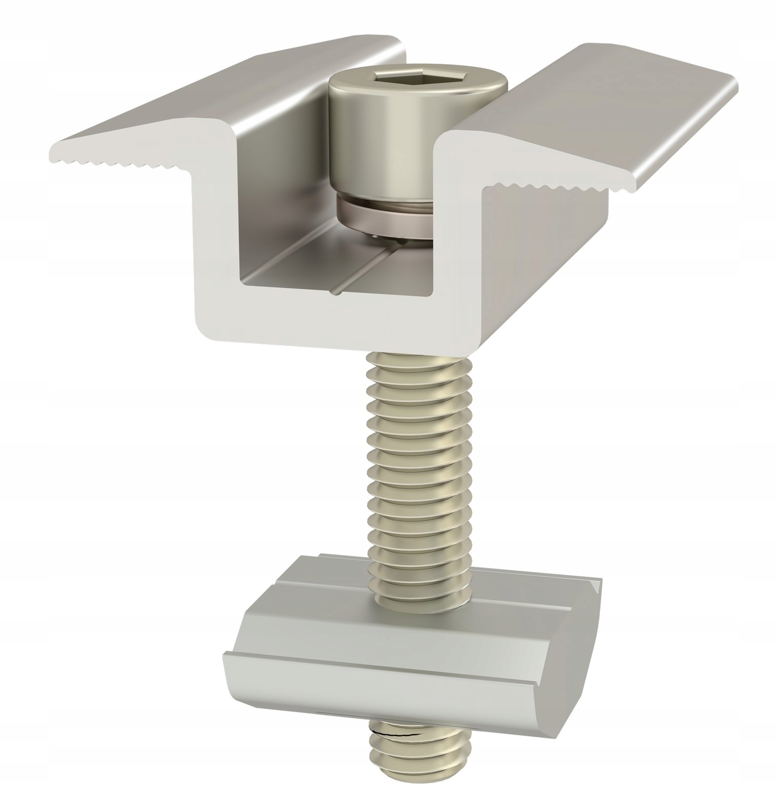 - Особая конструкция нижнего прижимного элемента позволяет устанавливать зажим в любом месте. на монтажной рейке без необходимости вставлять зажимы в паз на конце направляющей.