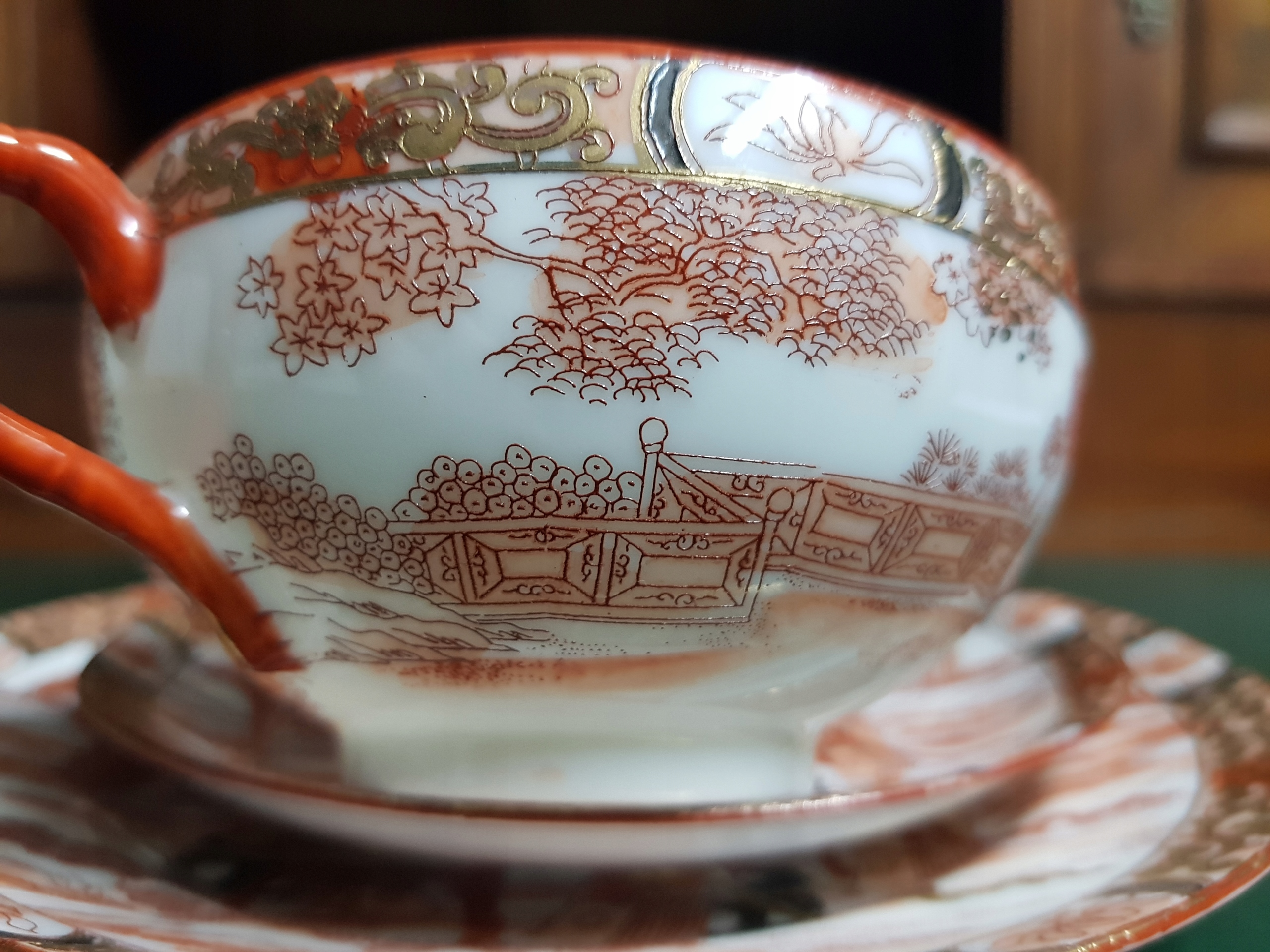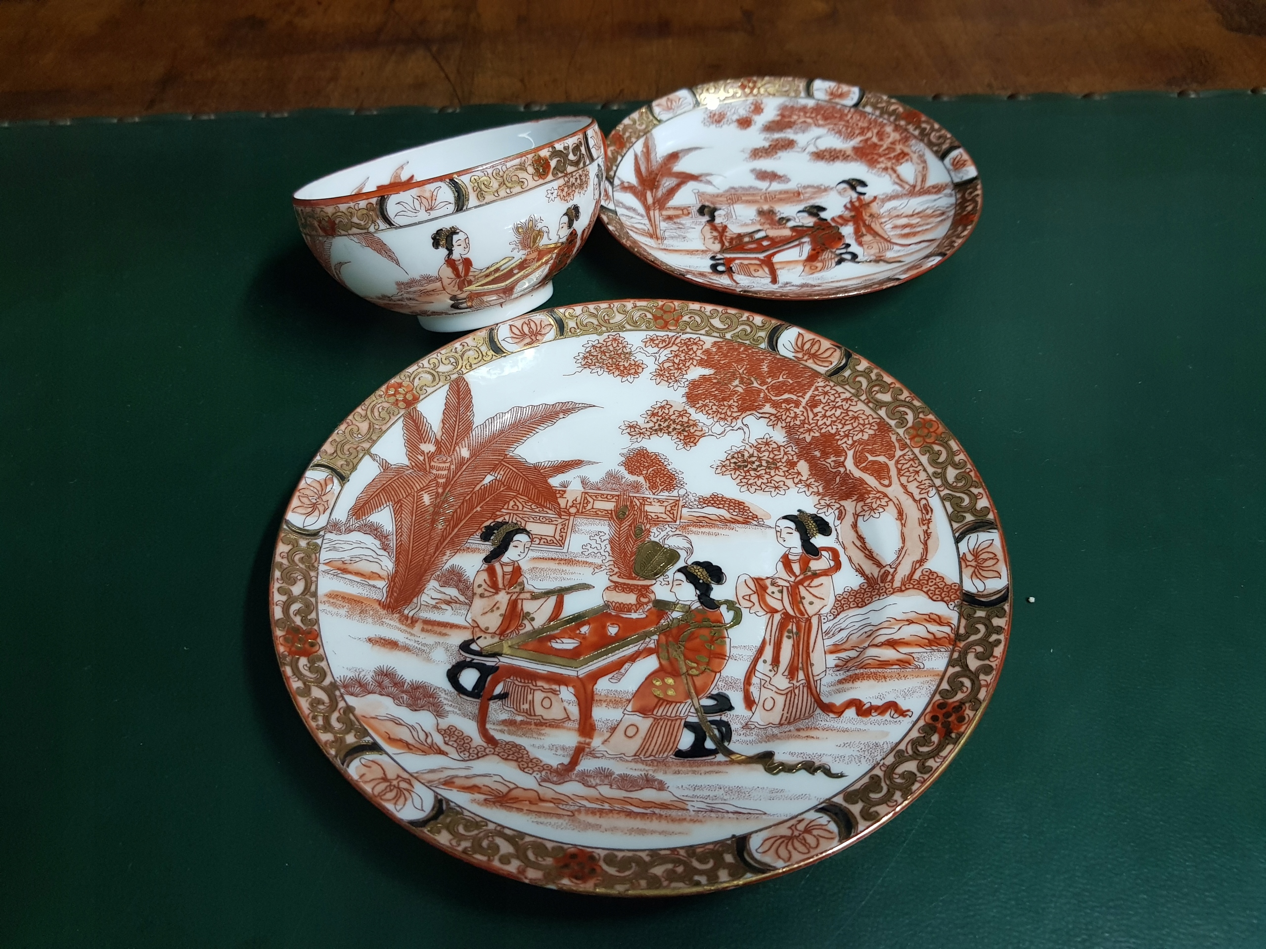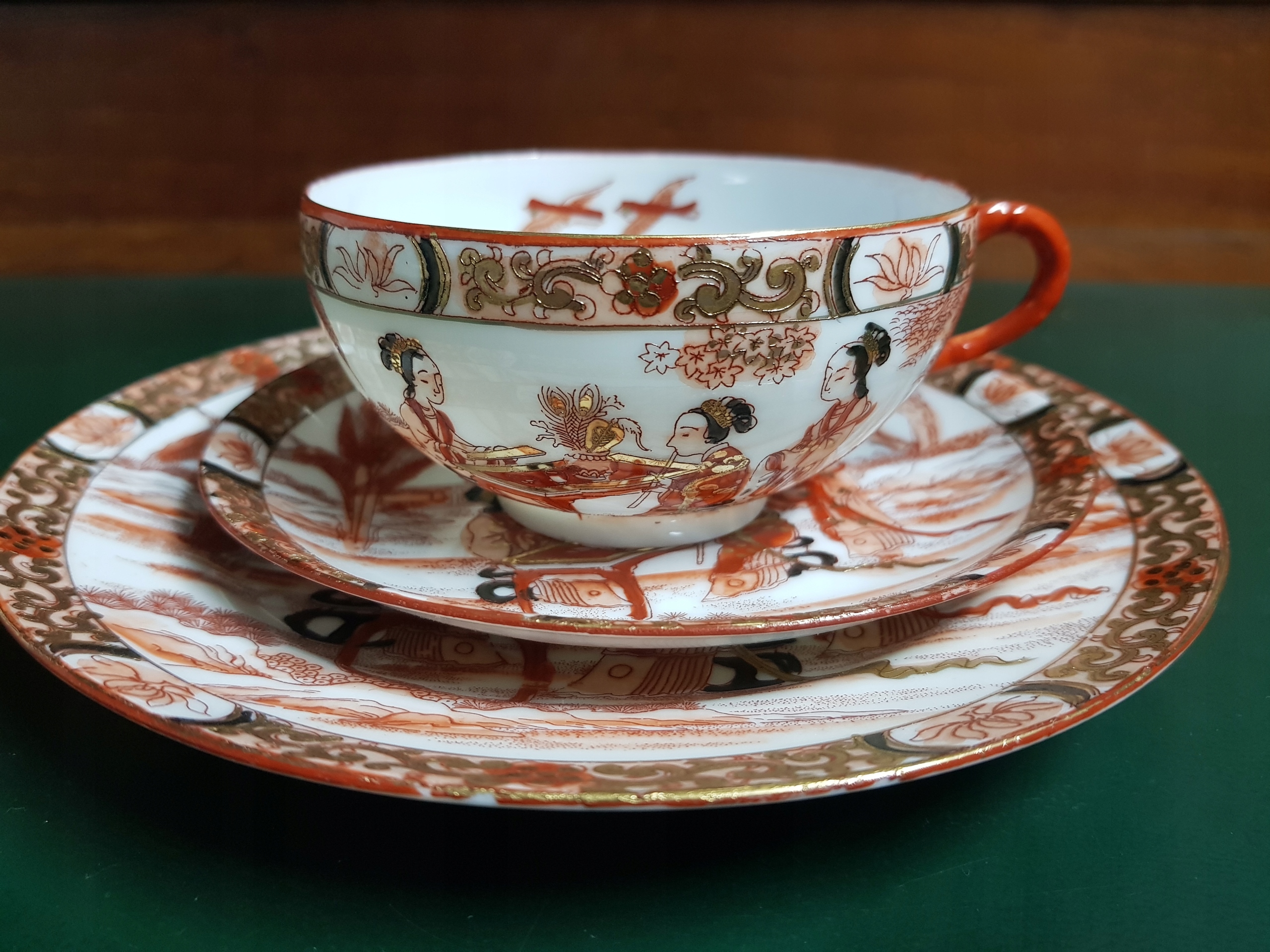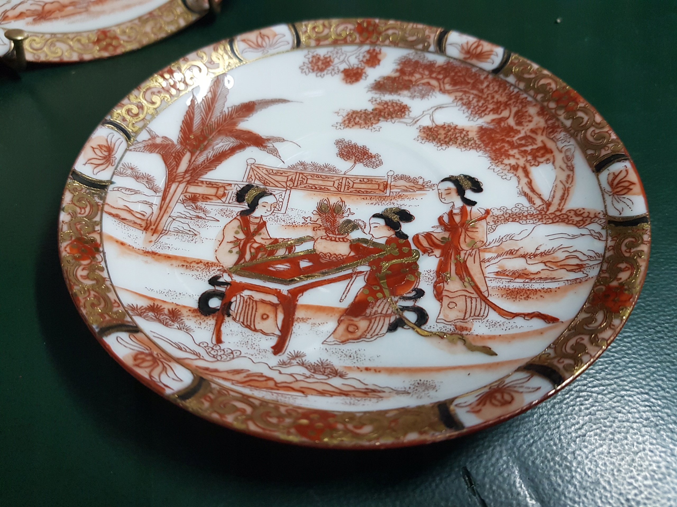 Предмет аукциона - чайный сервиз с изображением 3-х гейш.Все расписано вручную.Дополнительно позолочено.