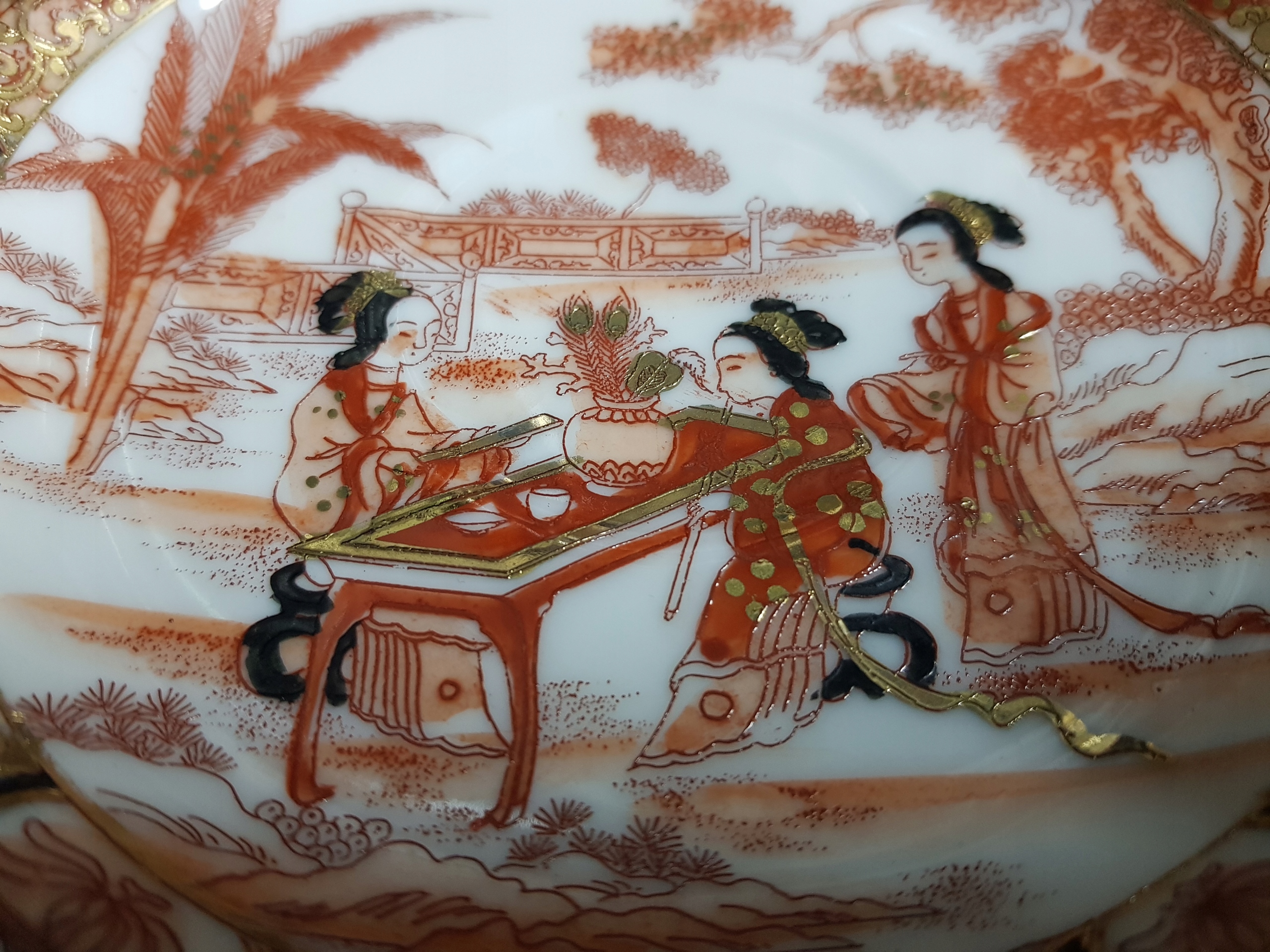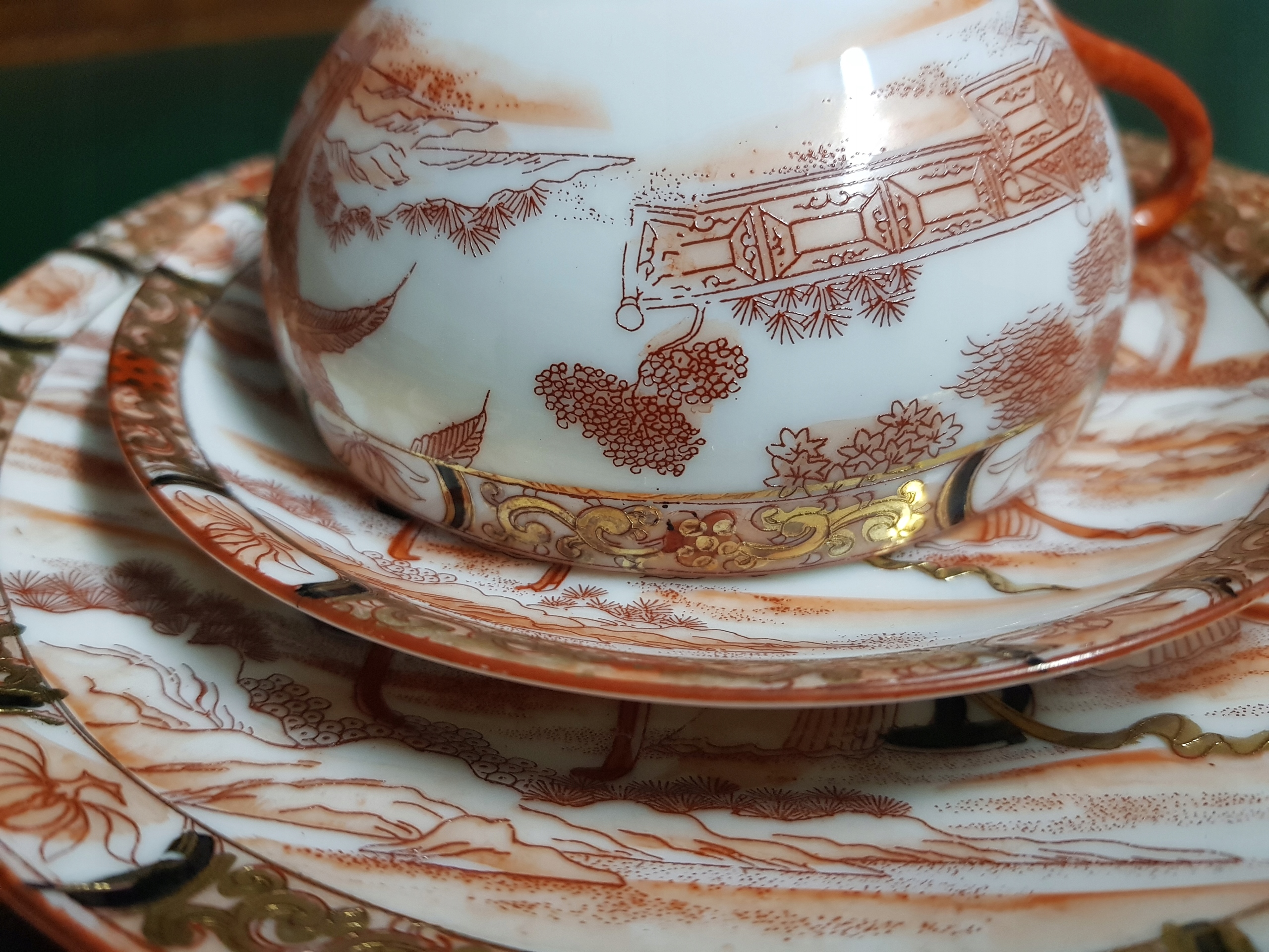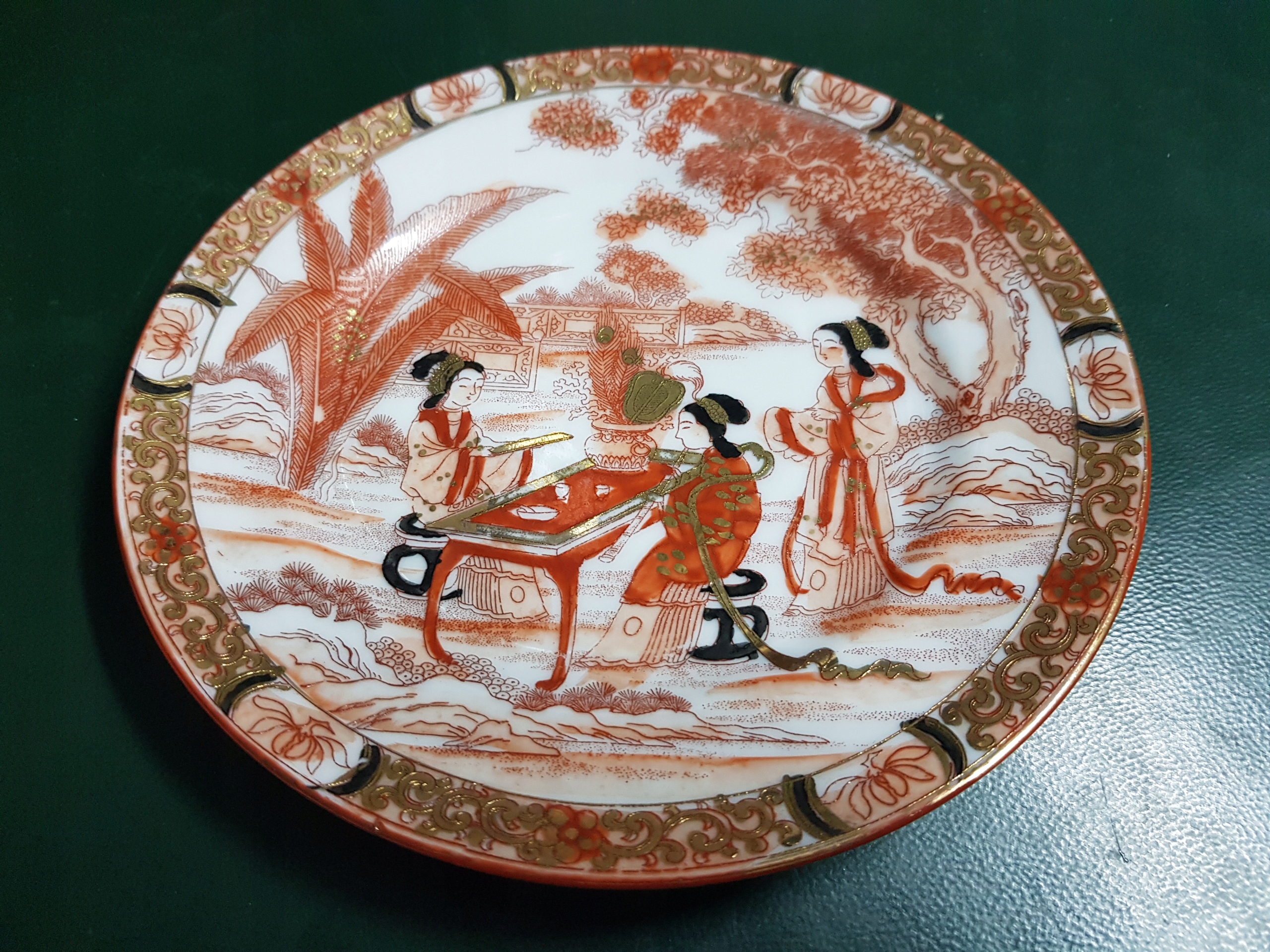 Предмет аукциона - чайный сервиз с изображением 3-х гейш.Все расписано вручную.Дополнительно позолочено.
