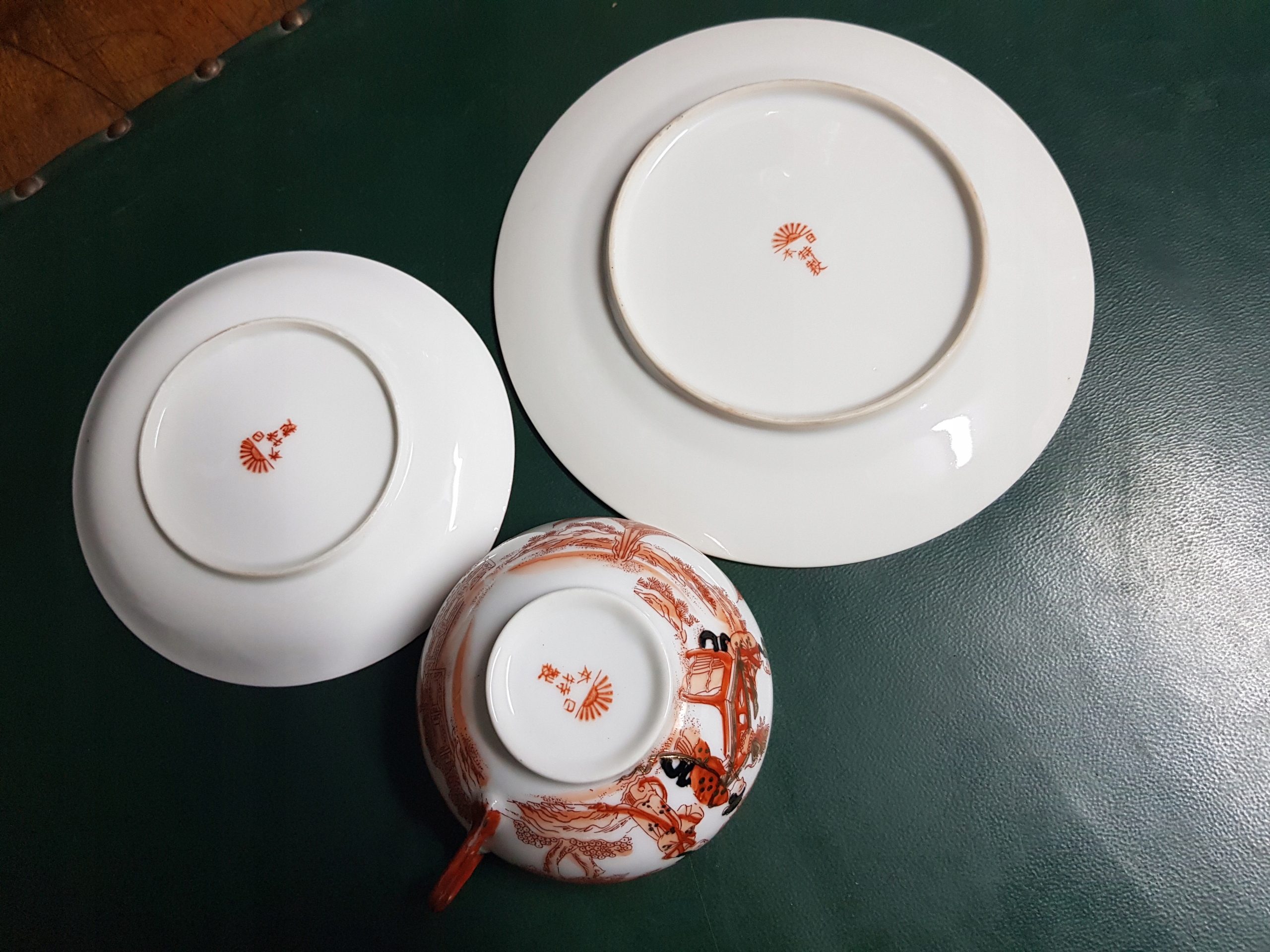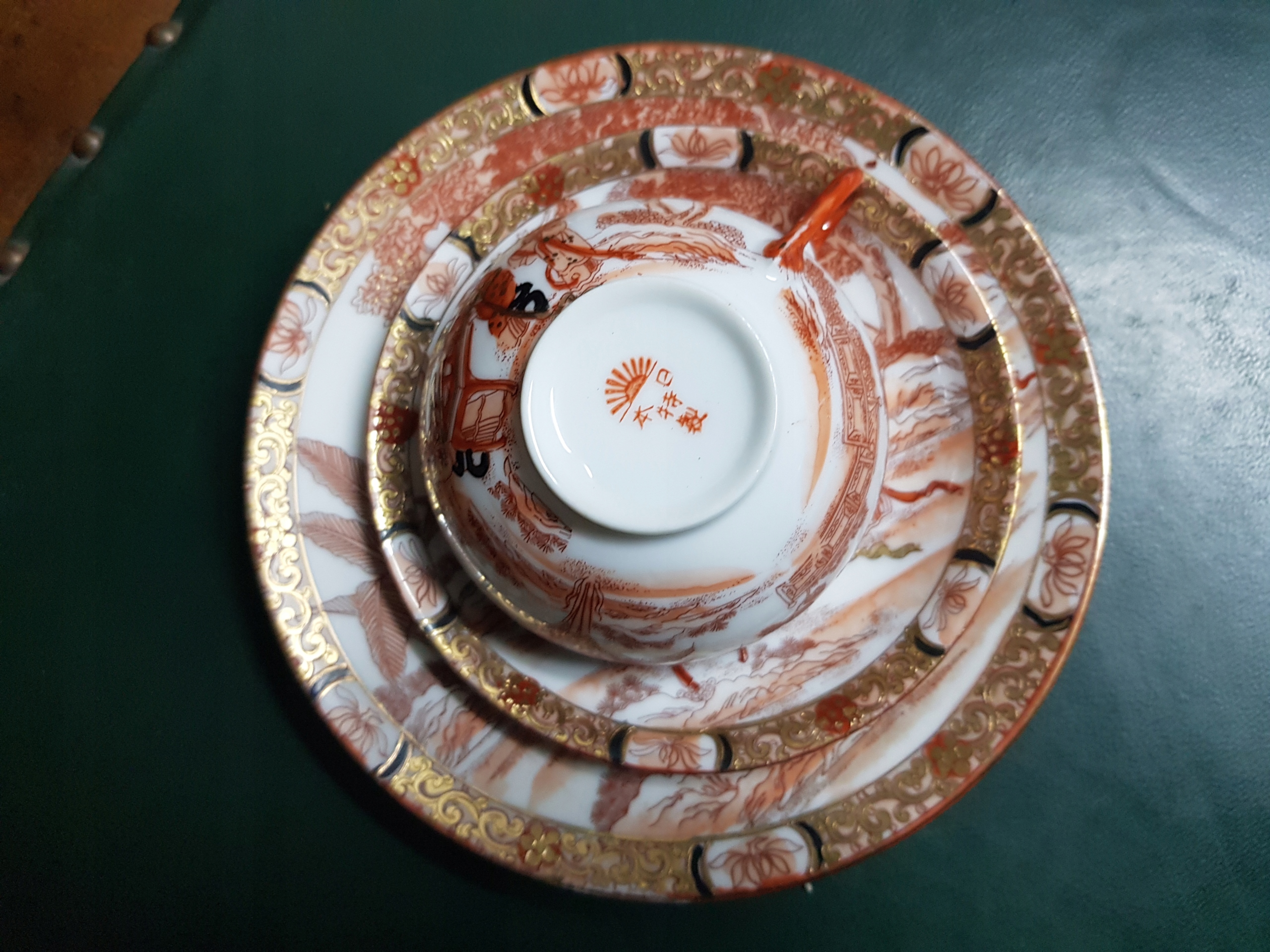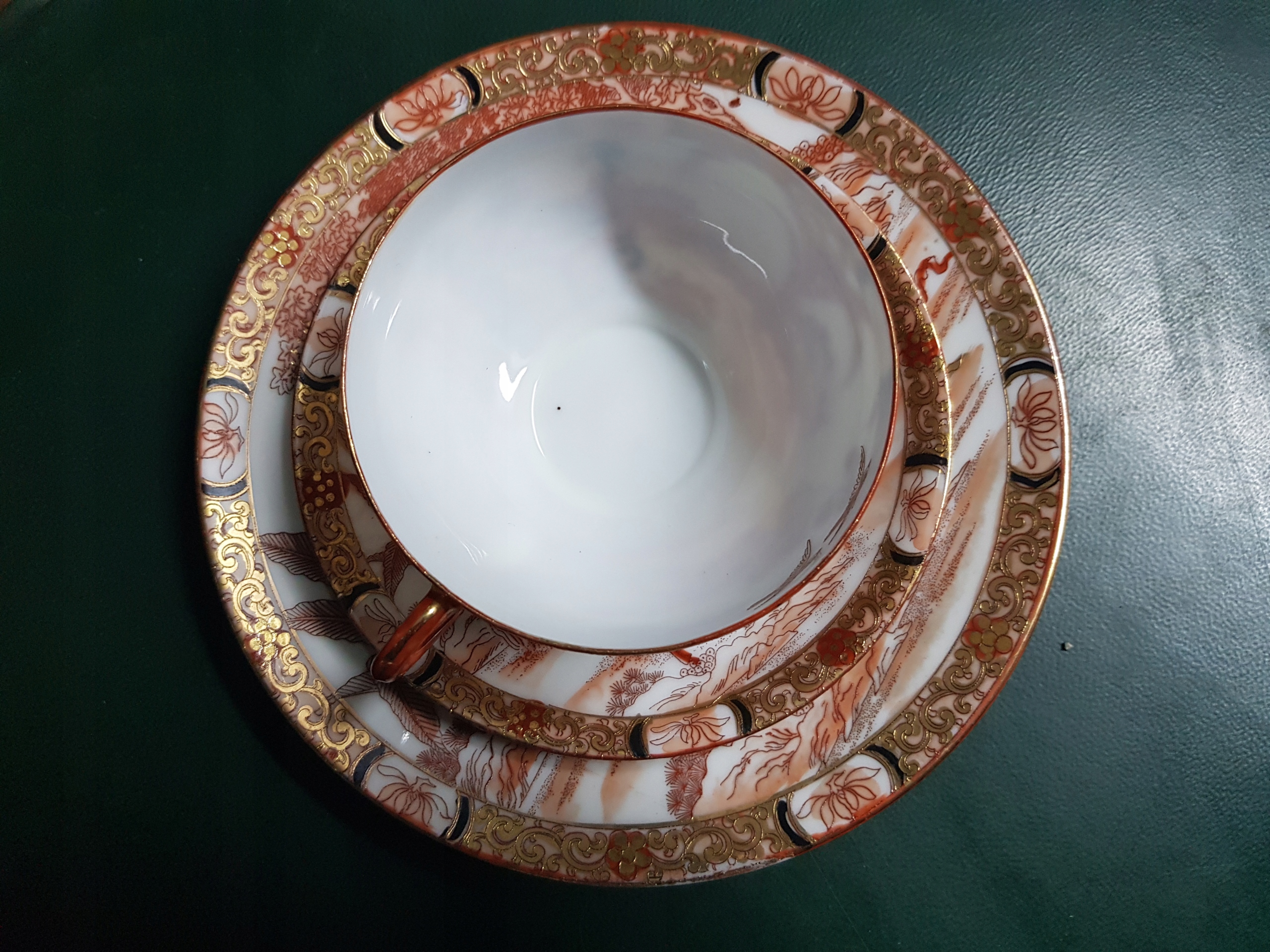 Предмет аукциона - чайный сервиз с изображением 3-х гейш.Все расписано вручную.Дополнительно позолочено.