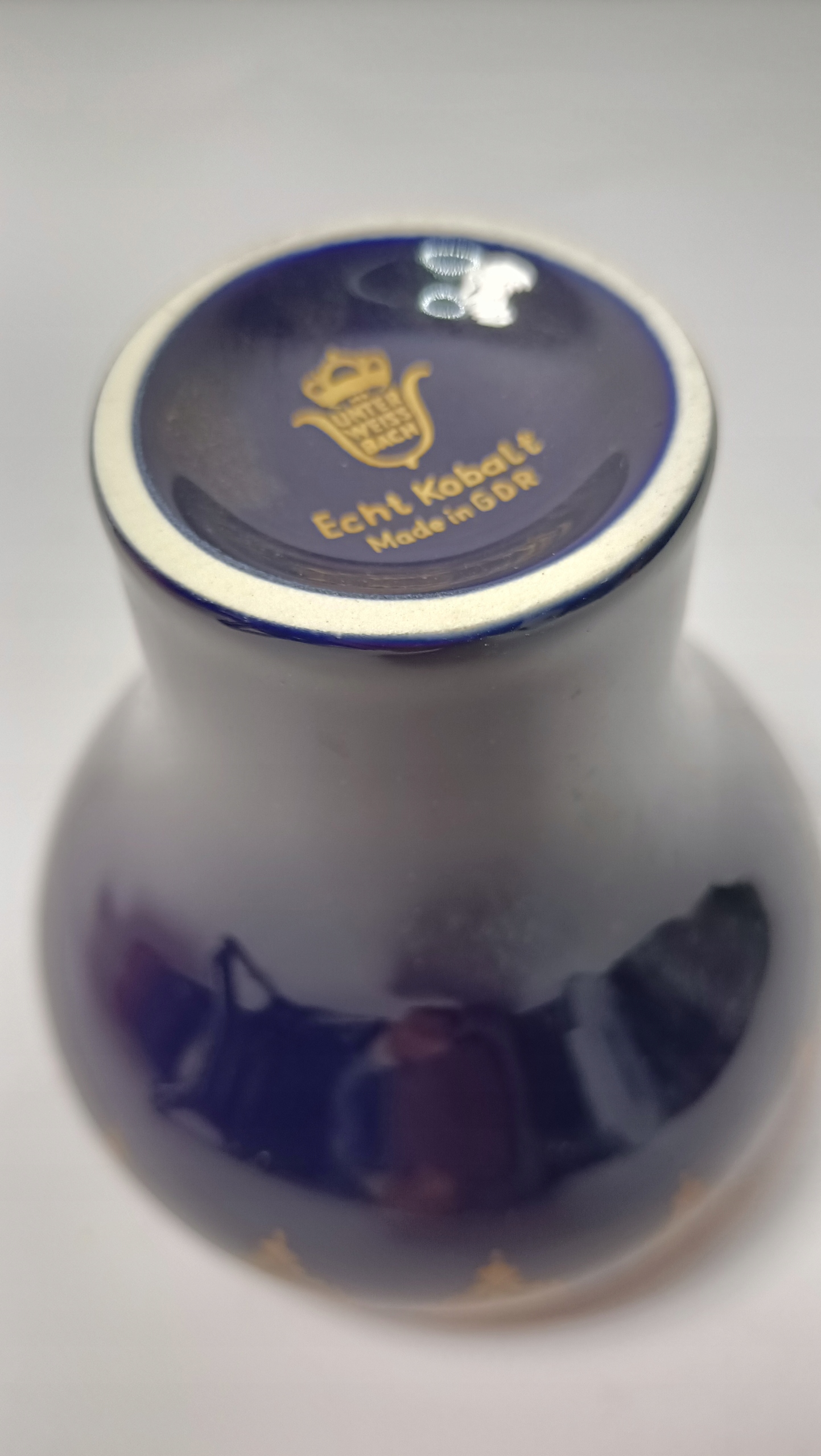 Очаровательная фарфоровая кобальтовая ваза Unter Weiss Bach T11