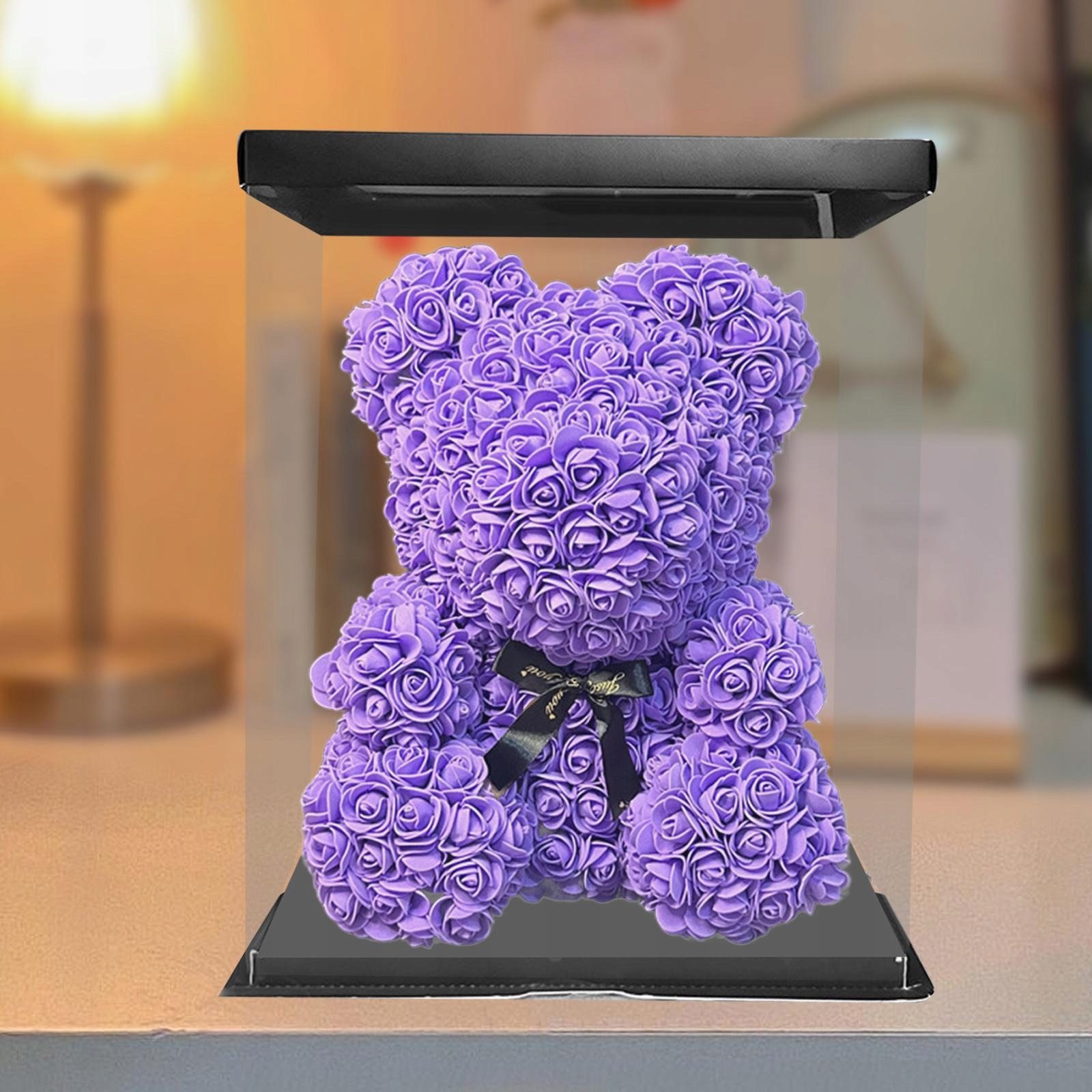 Очаровательный медведь с розами, имитирующим цветы медведь с фиолетовой годовщиной коробкой