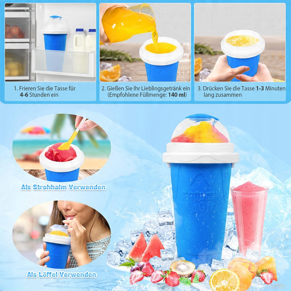 Легкая и простая в использовании , кружка Дополнительно содержит набор рецептов, по которым можно легко приготовить вкусное мороженое или холодные коктейли